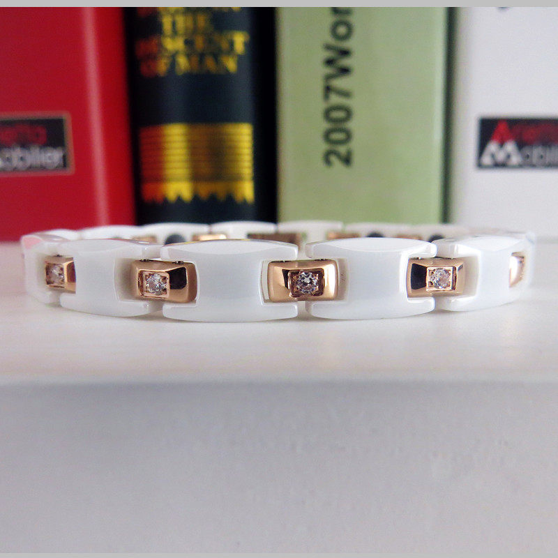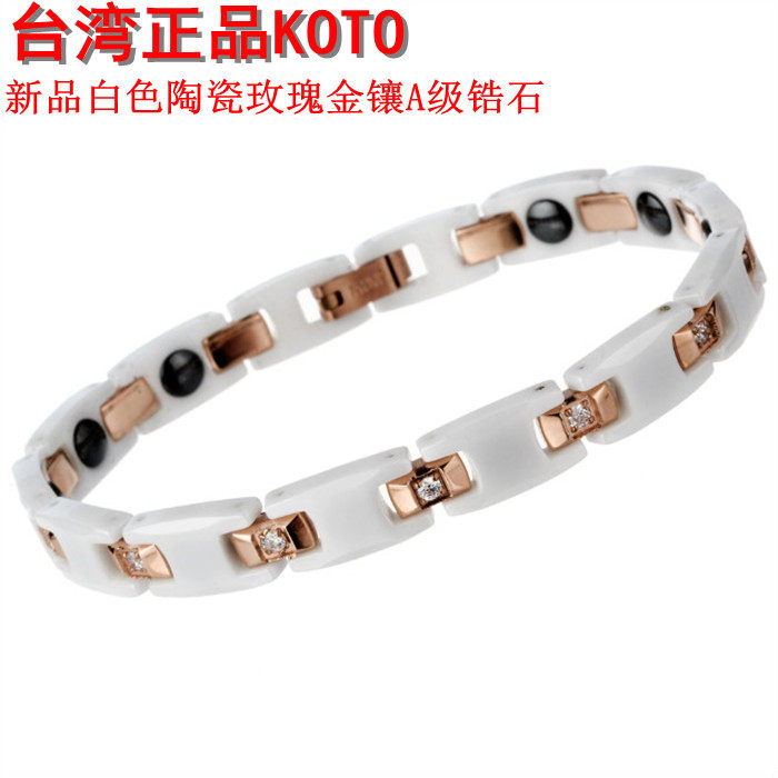 新品台湾KOTO白色精密陶瓷玫瑰金锆石防辐射手链表白礼物生日手链