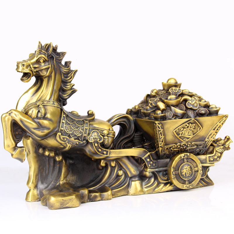 朴器 铜日进斗金马拉车摆件 铜马拉元宝摆件 铜马拉车摆件 铜马
