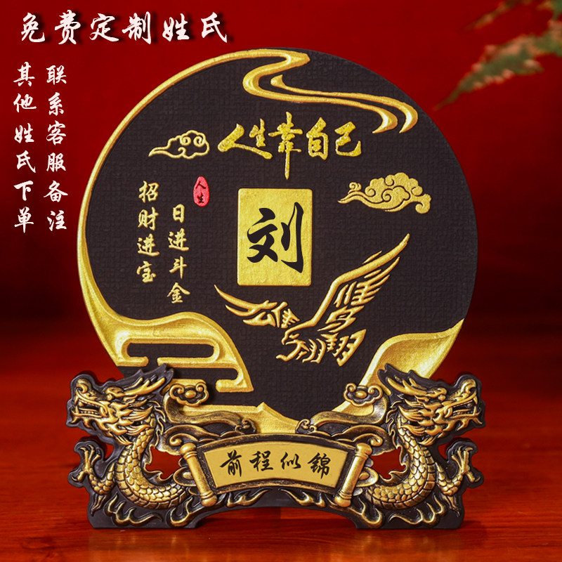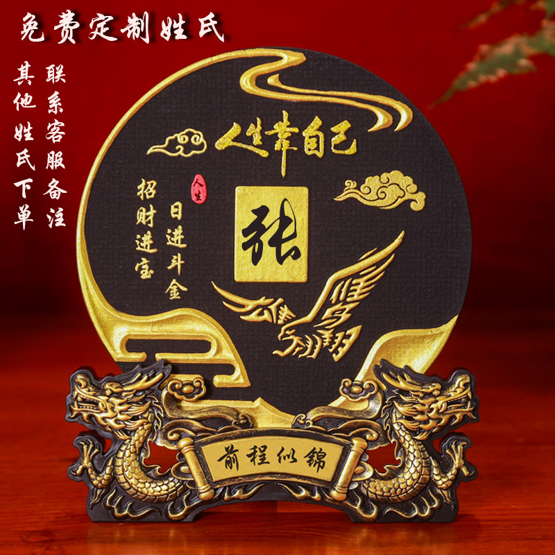 人生靠自己励志款百家姓氏定制装饰摆件送朋友生日乔迁办公室礼品