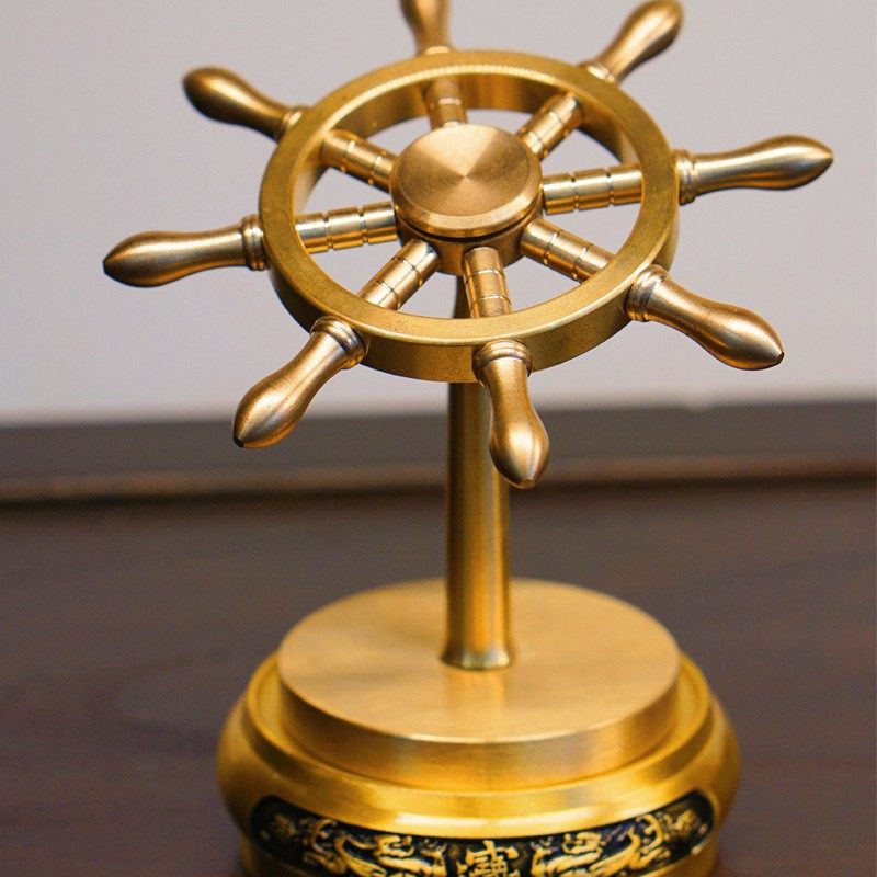 船舵摆件纯黄铜一帆风顺舵手旋转方向盘解压创意掌舵者领航舵摆件
