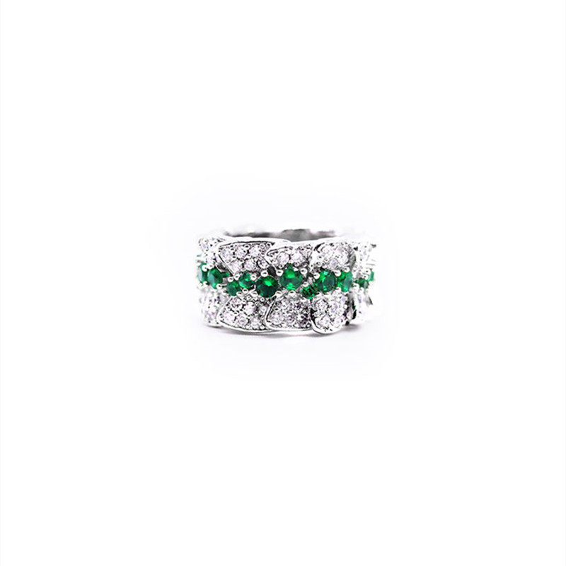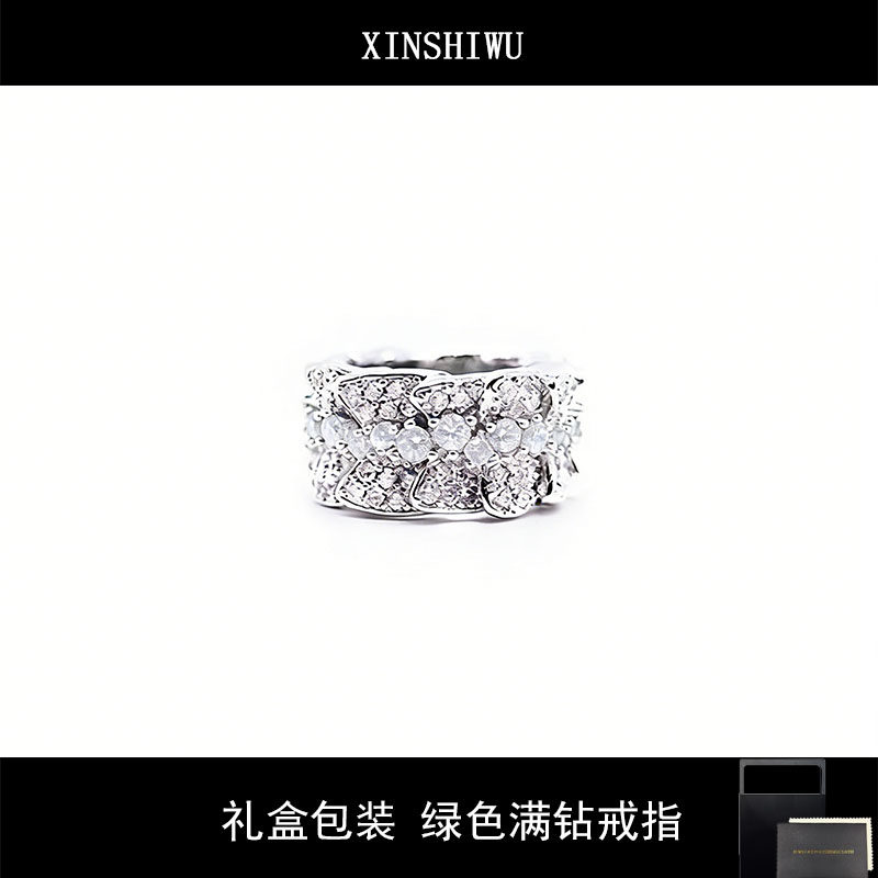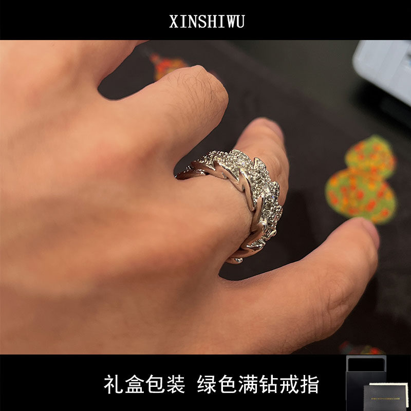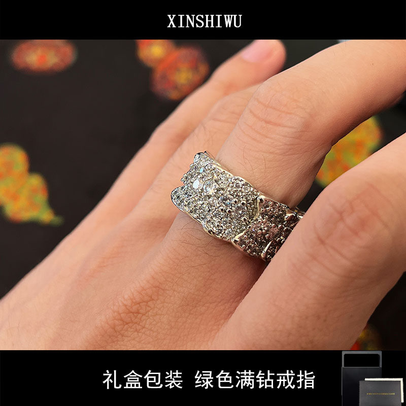 原创设计微镶绿色满钻锆石戒指男女潮时尚高级感潮流情侣款礼盒款
