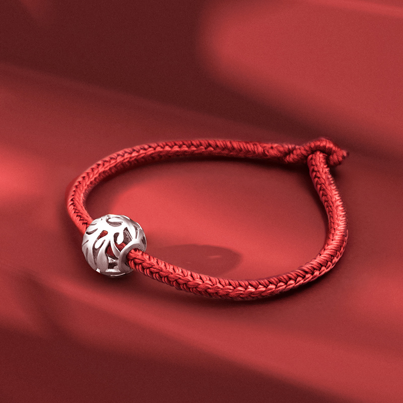 *海盗船银饰红绳银手链ins小众设计手工编织红绳女情侣转运首饰