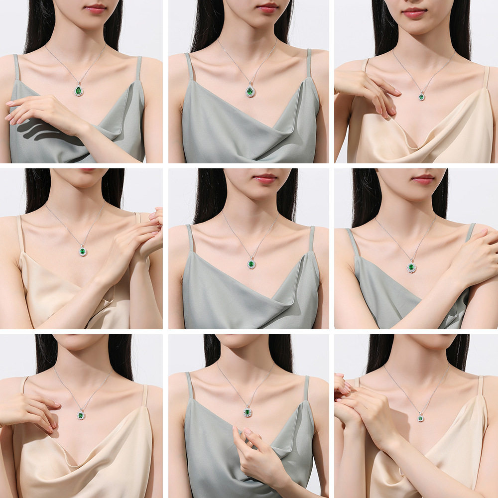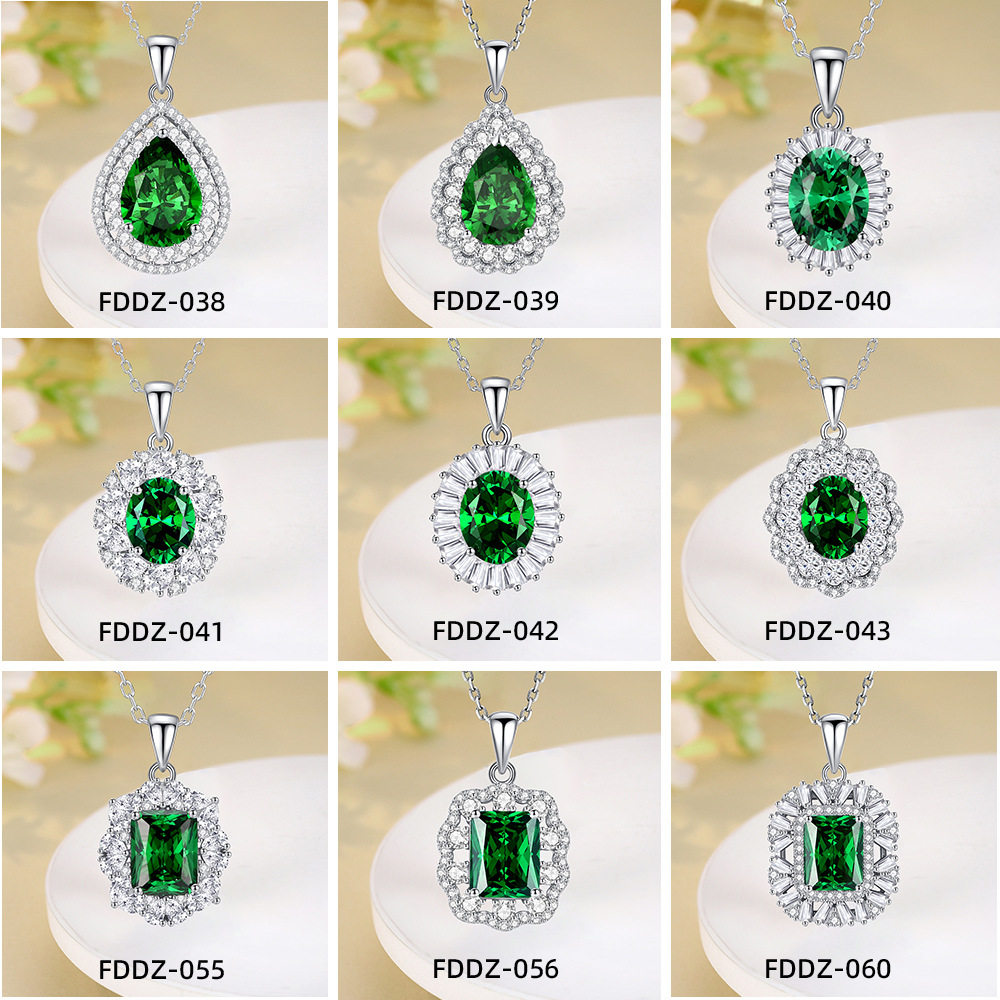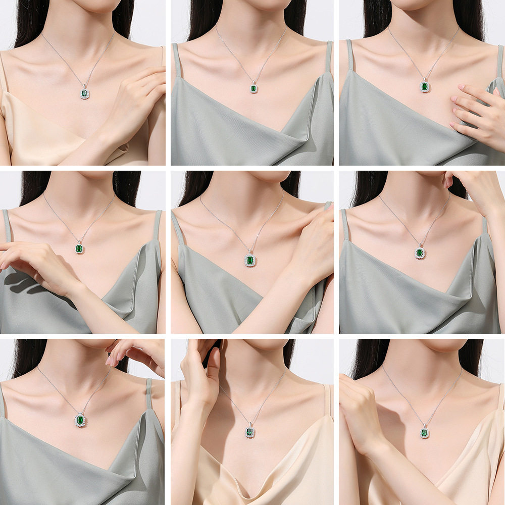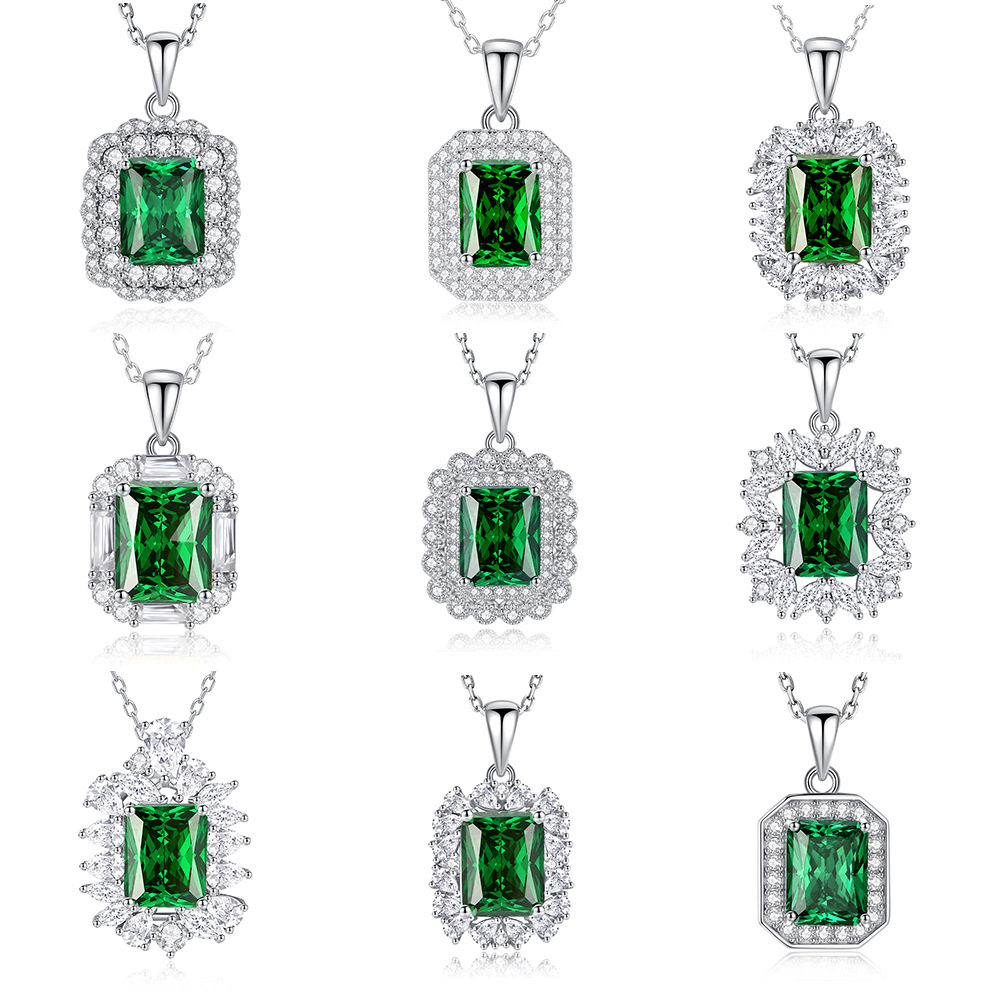 钻石之乡商丘人工钻石碎花祖母绿S925银项链配饰女送礼纪念锁骨链