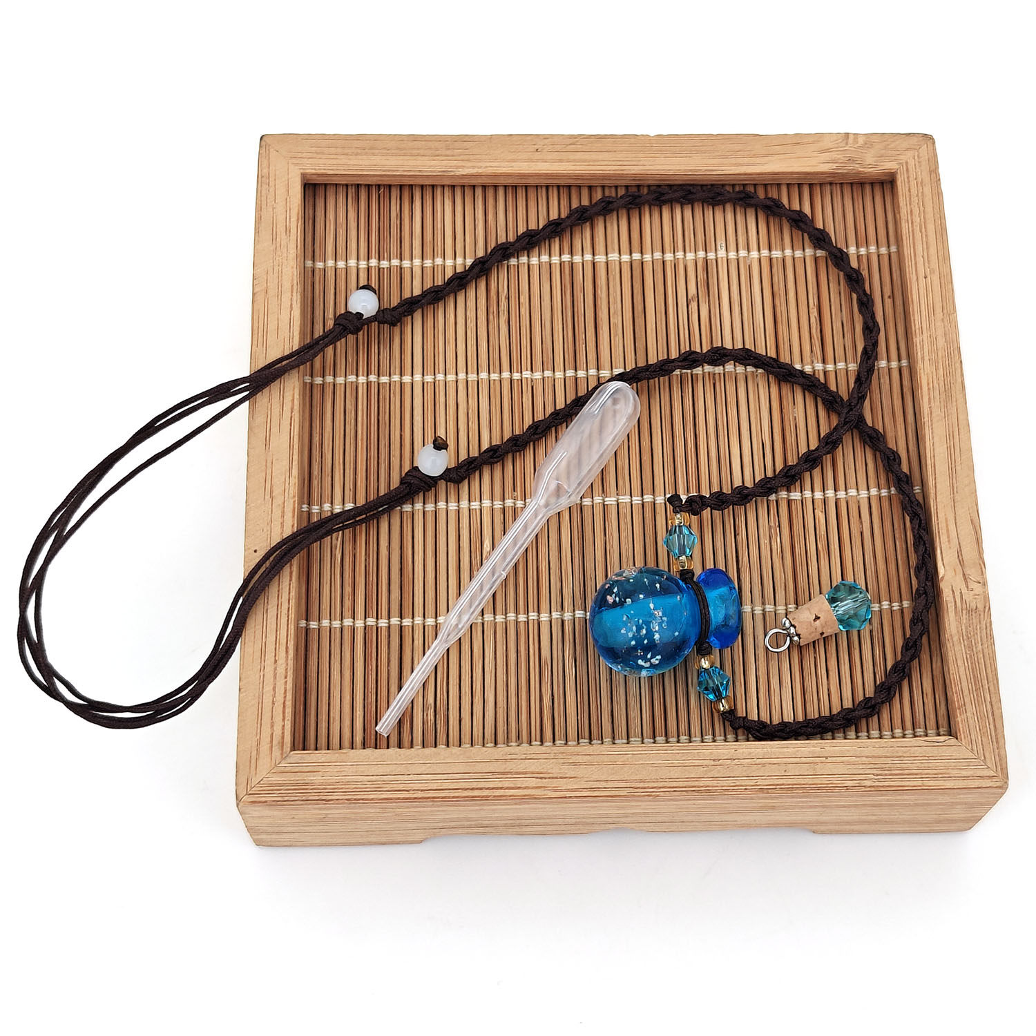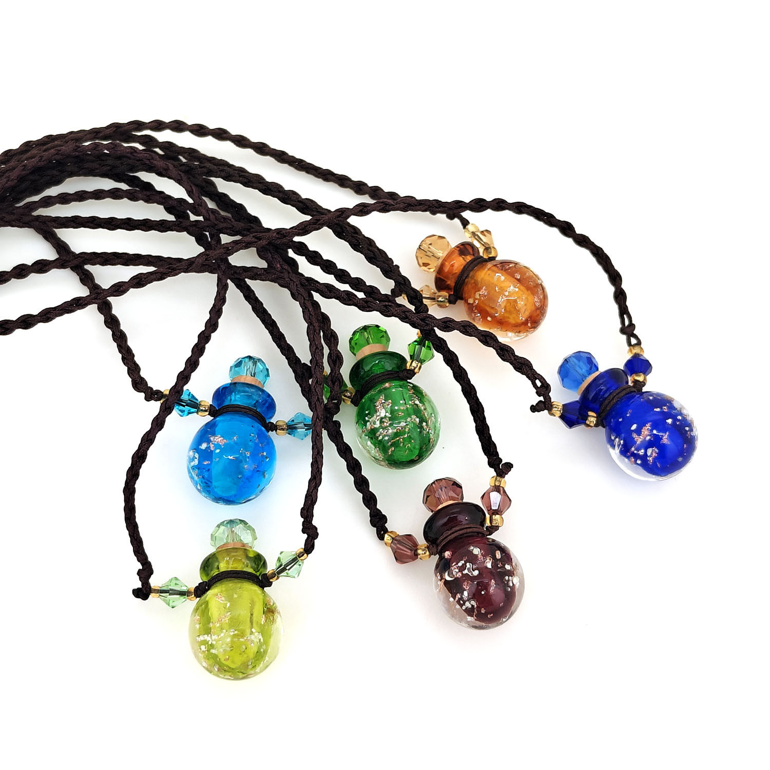 圆葫芦沙子夜光扩香琉璃精油瓶项链女小夜明珠香薰香水瓶吊坠礼物