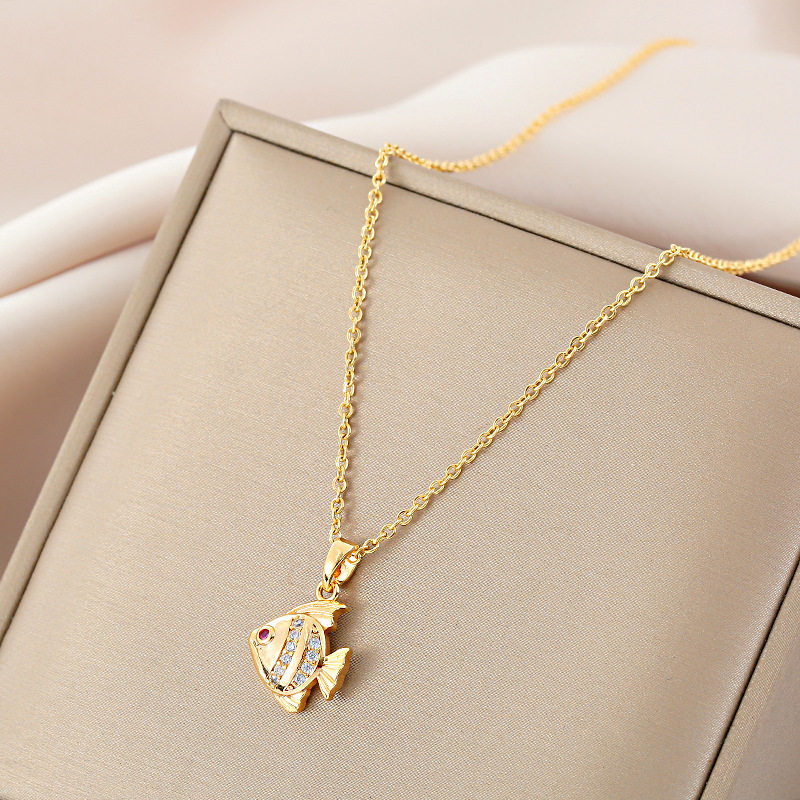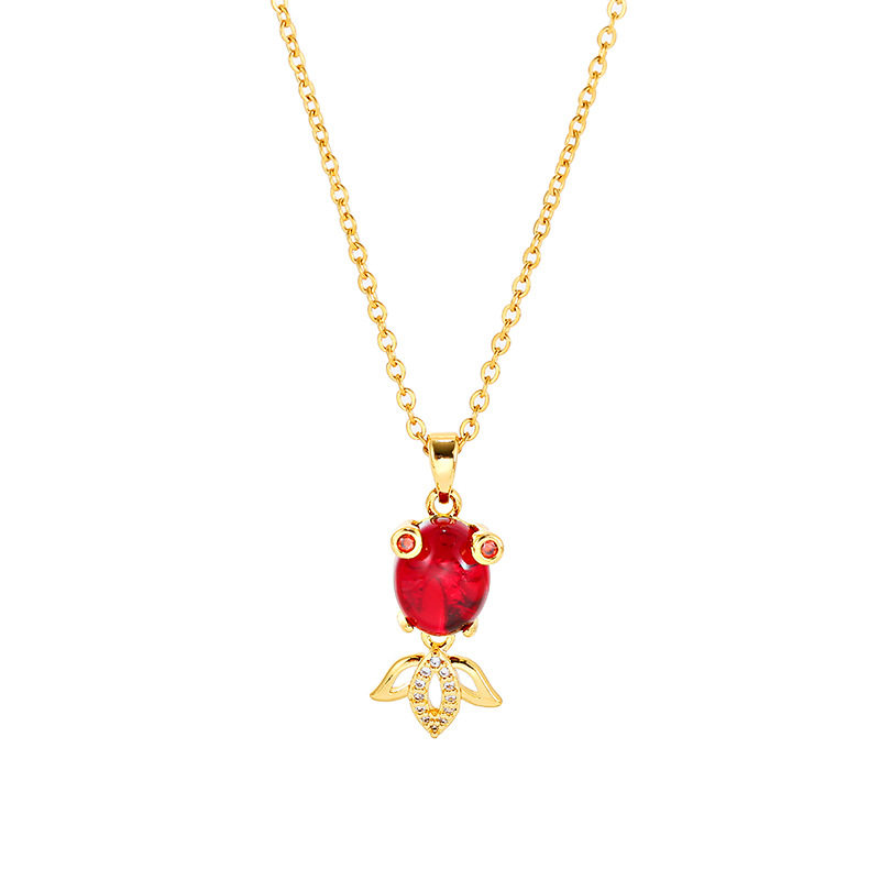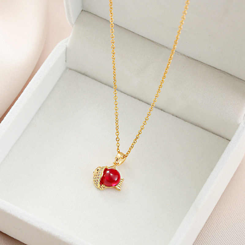 新年红色招财锦鲤钛钢项链女小金鱼转运锁骨链金色简约不掉色饰品