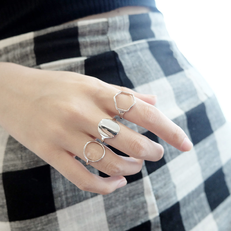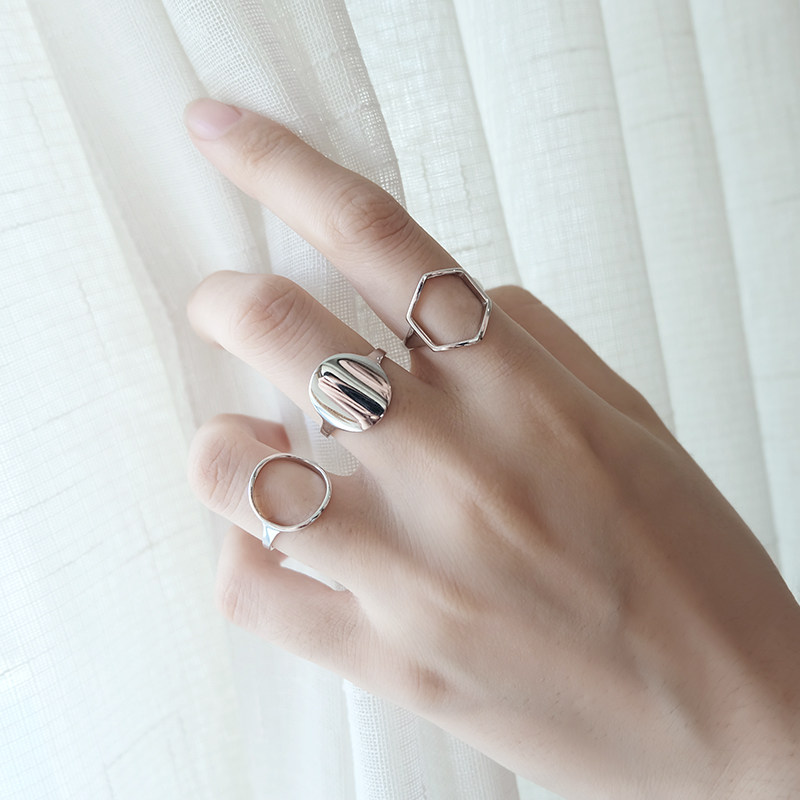 S925纯银戒指女制作人孔孝真同款创意个性几何开口三件套戒指指环