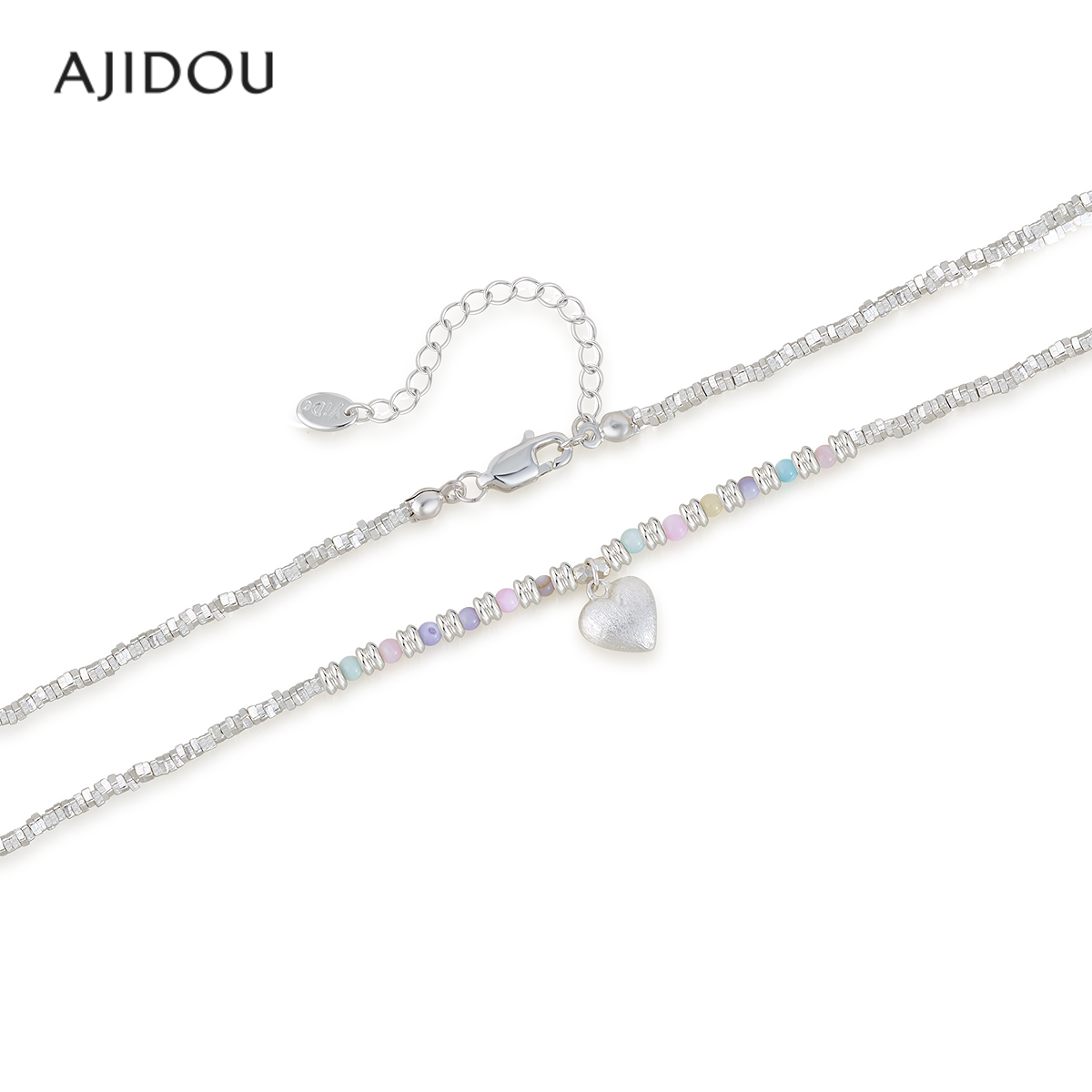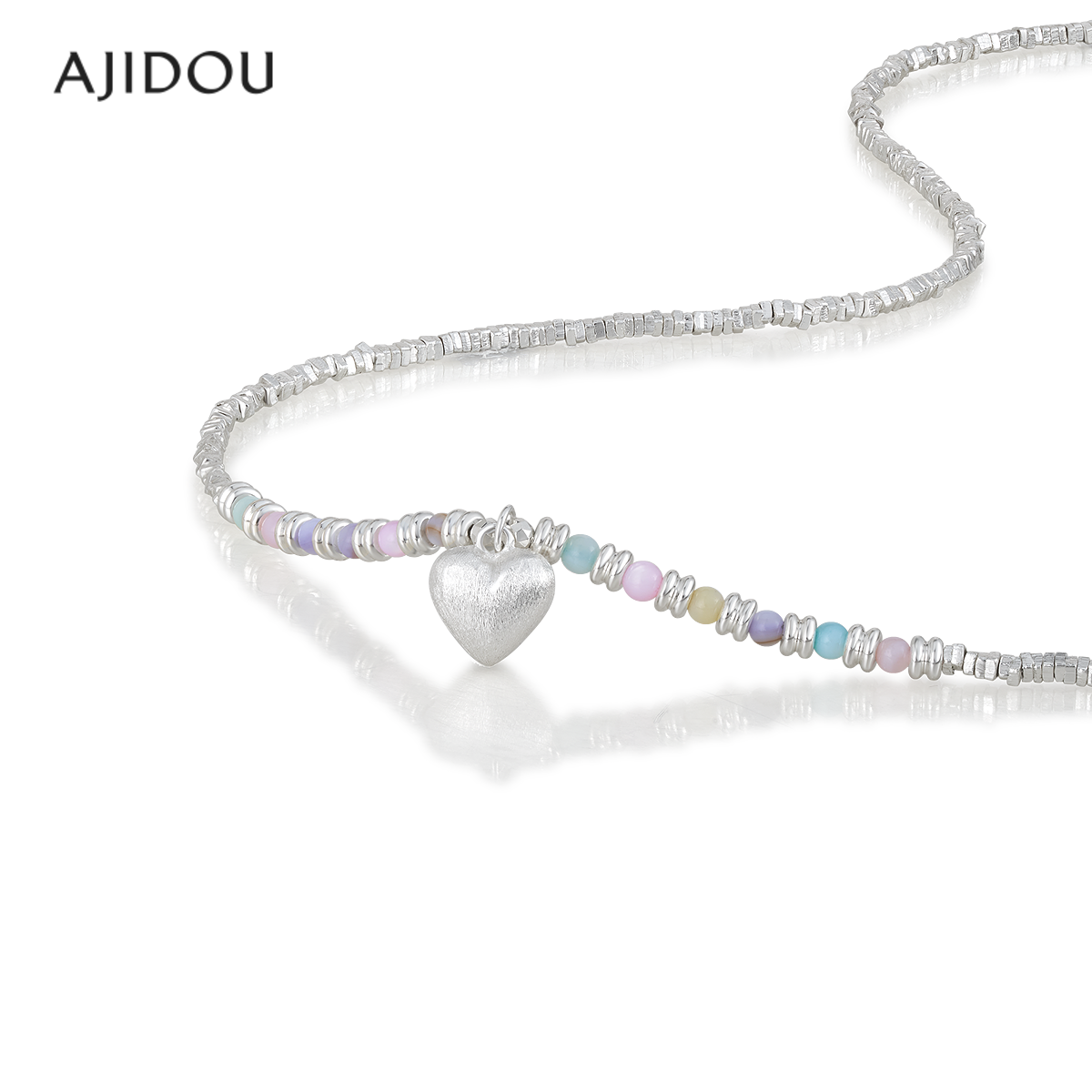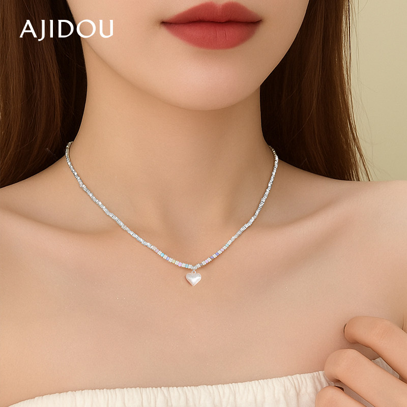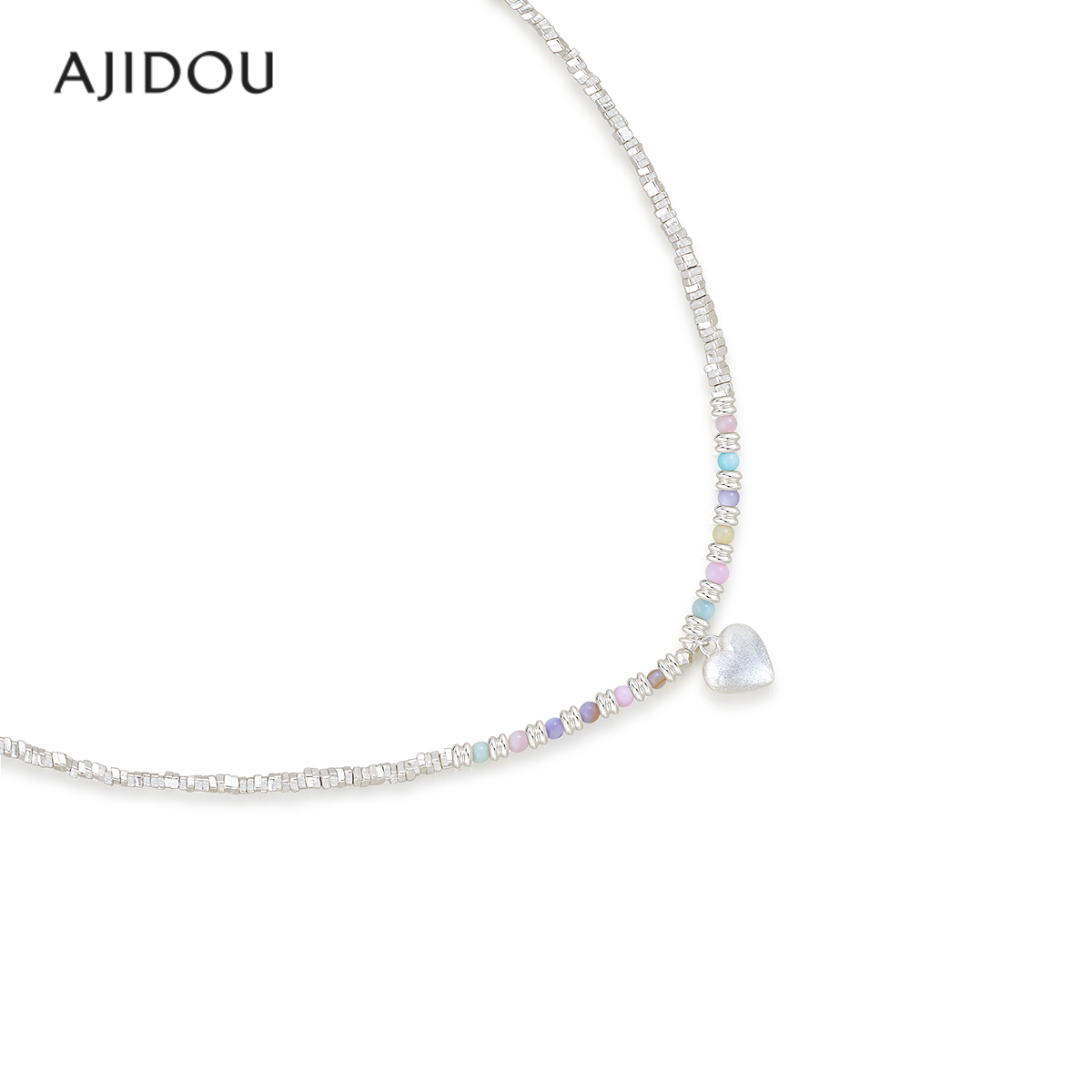 AJIDOU阿吉豆项链女款多巴胺银色爱心吊坠小众设计颈链气质锁骨链