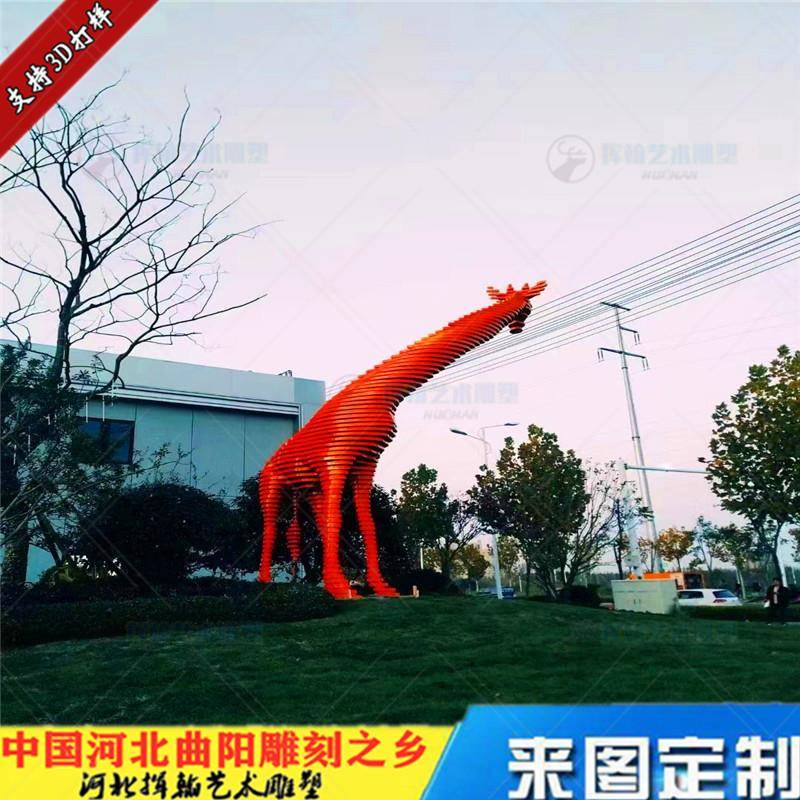 不锈钢几何切面长颈鹿雕塑金属镜面镂空动物景观园林摆件展品