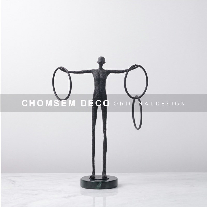 现代样板间入门玄关柜黑色铸铁人物摆件水晶花器客厅博古架工艺品