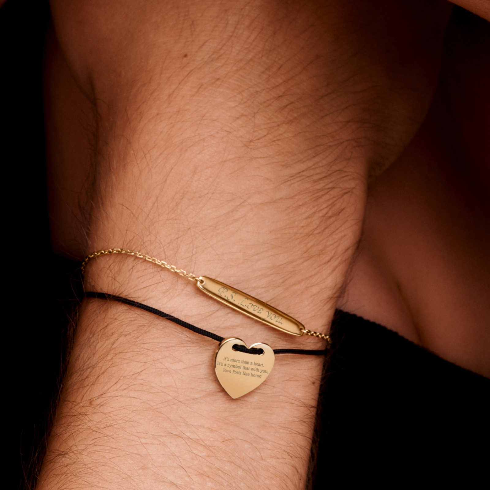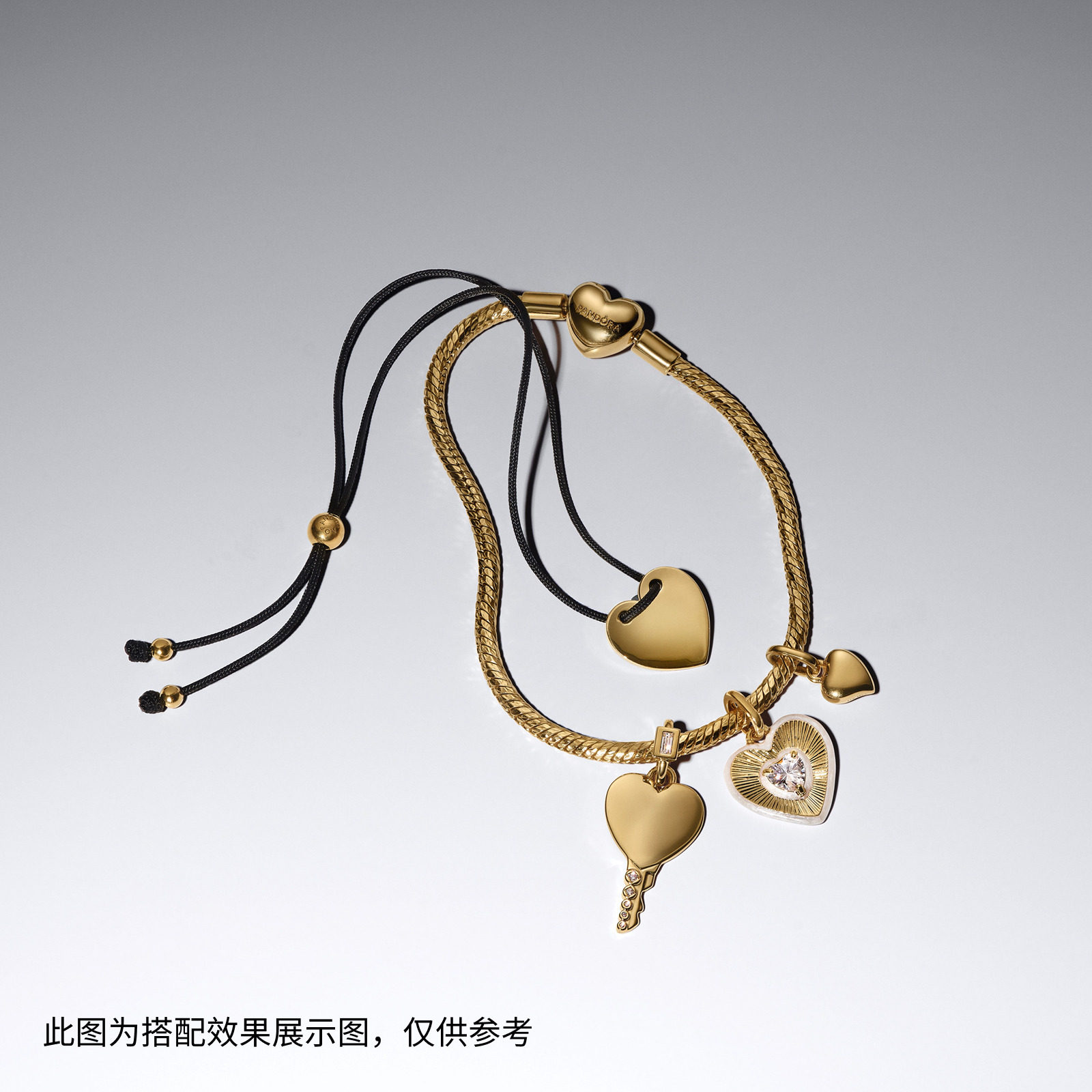 Pandora潘多拉心形黑色编绳滑扣式手链个性时尚礼物