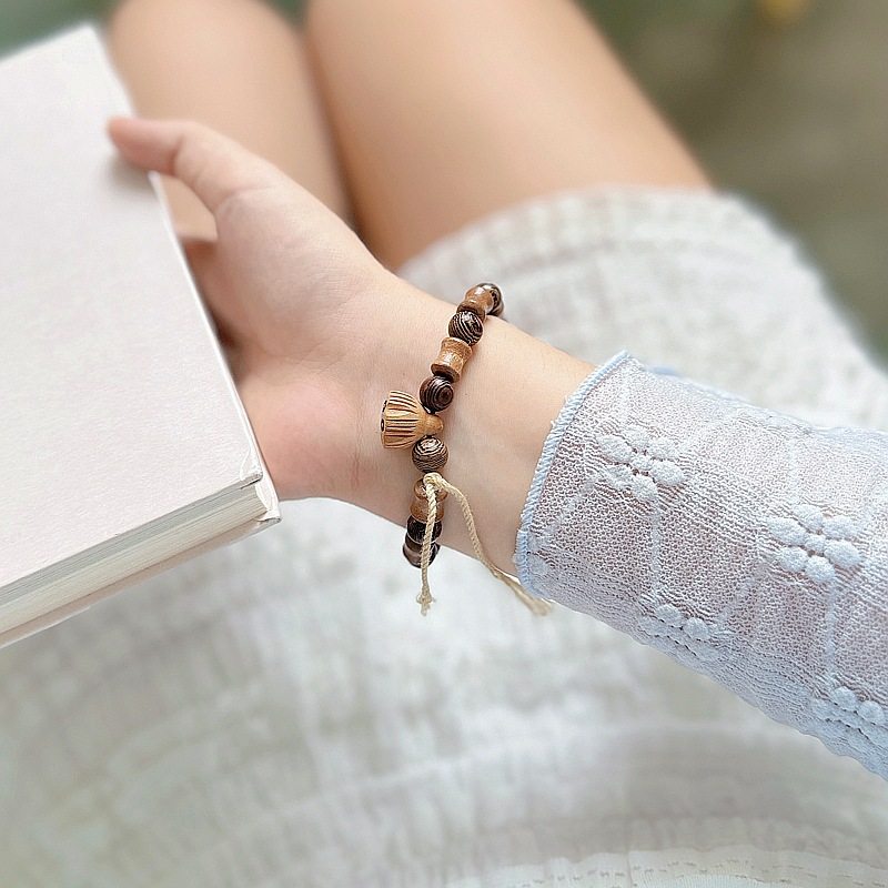 秋冬新款檀木手链高级感莲蓬新中式百搭饰品国风古风串珠手串配饰
