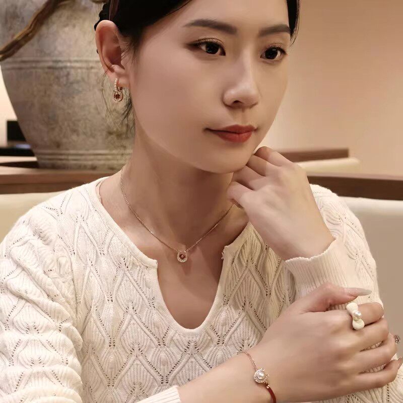 2026新款施家马蹄扣珍珠小红绳手链轻奢红色水钻项链女金色锁骨链