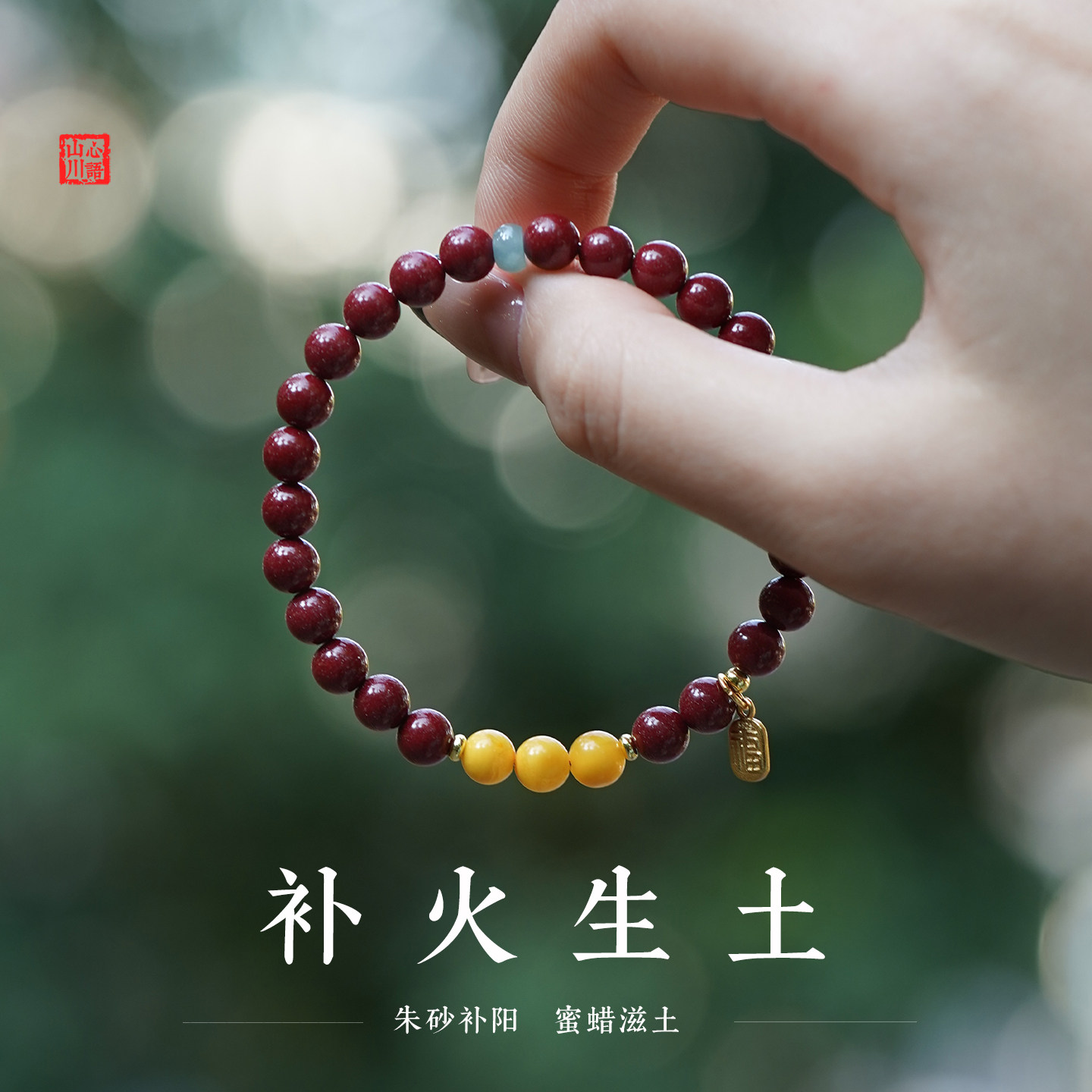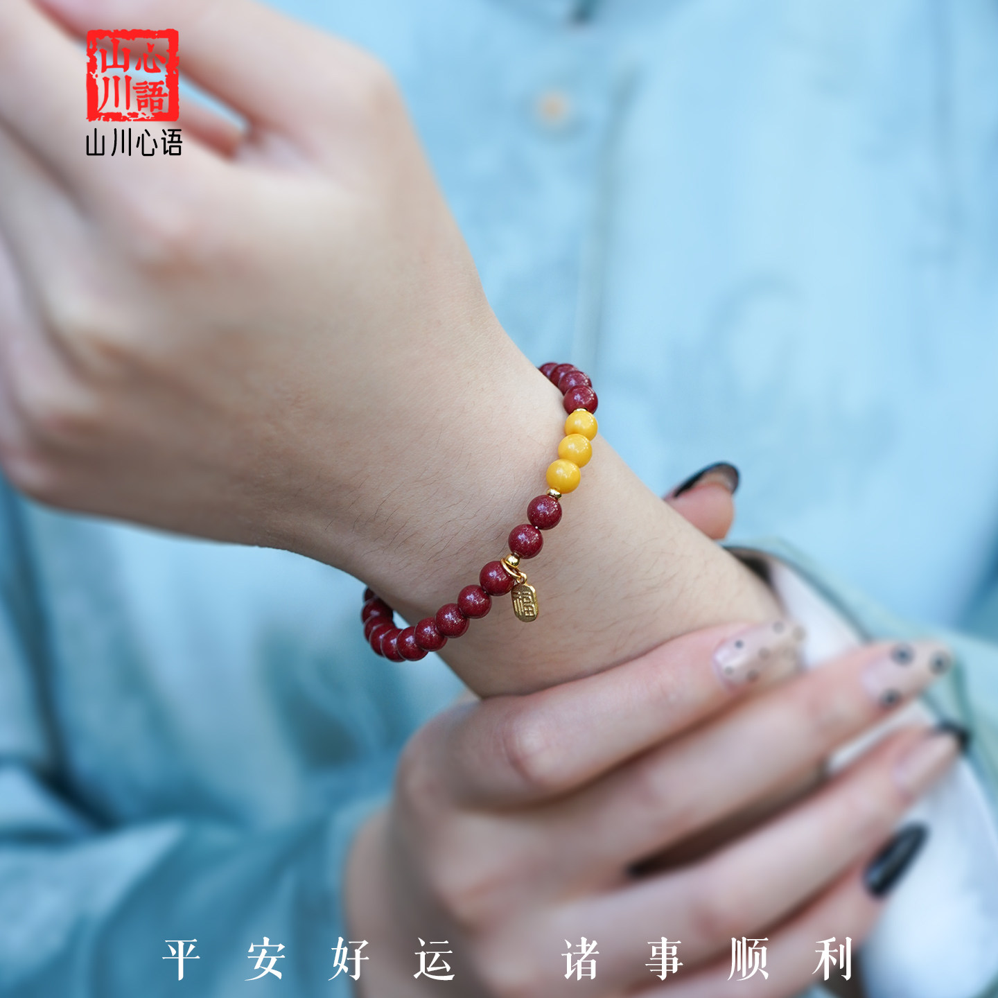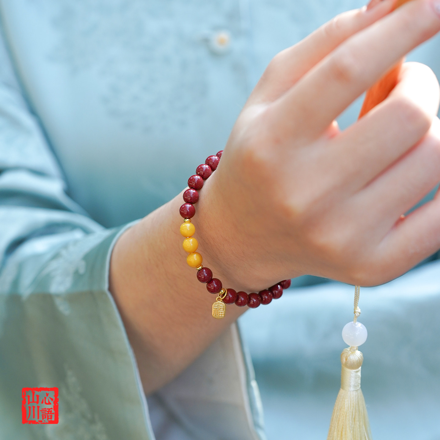 朱砂手串女款本命年手串天然紫金朱砂红色马年蜜蜡高冰蓝水礼物