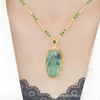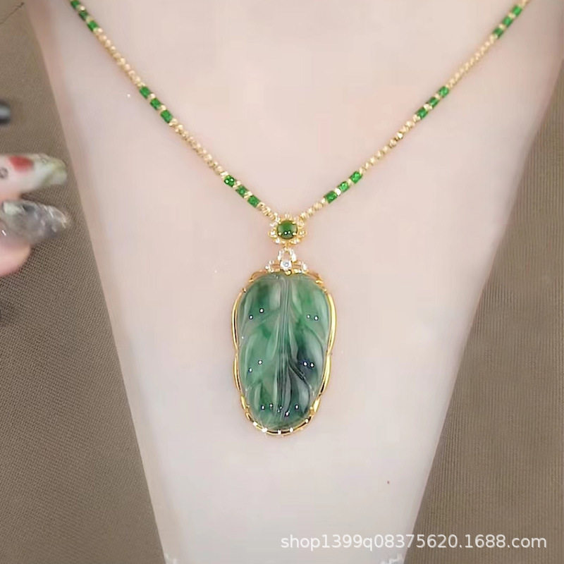 金枝玉叶仿玉石绿色项链吊坠女大叶有成竹节毛衣链服饰挂件