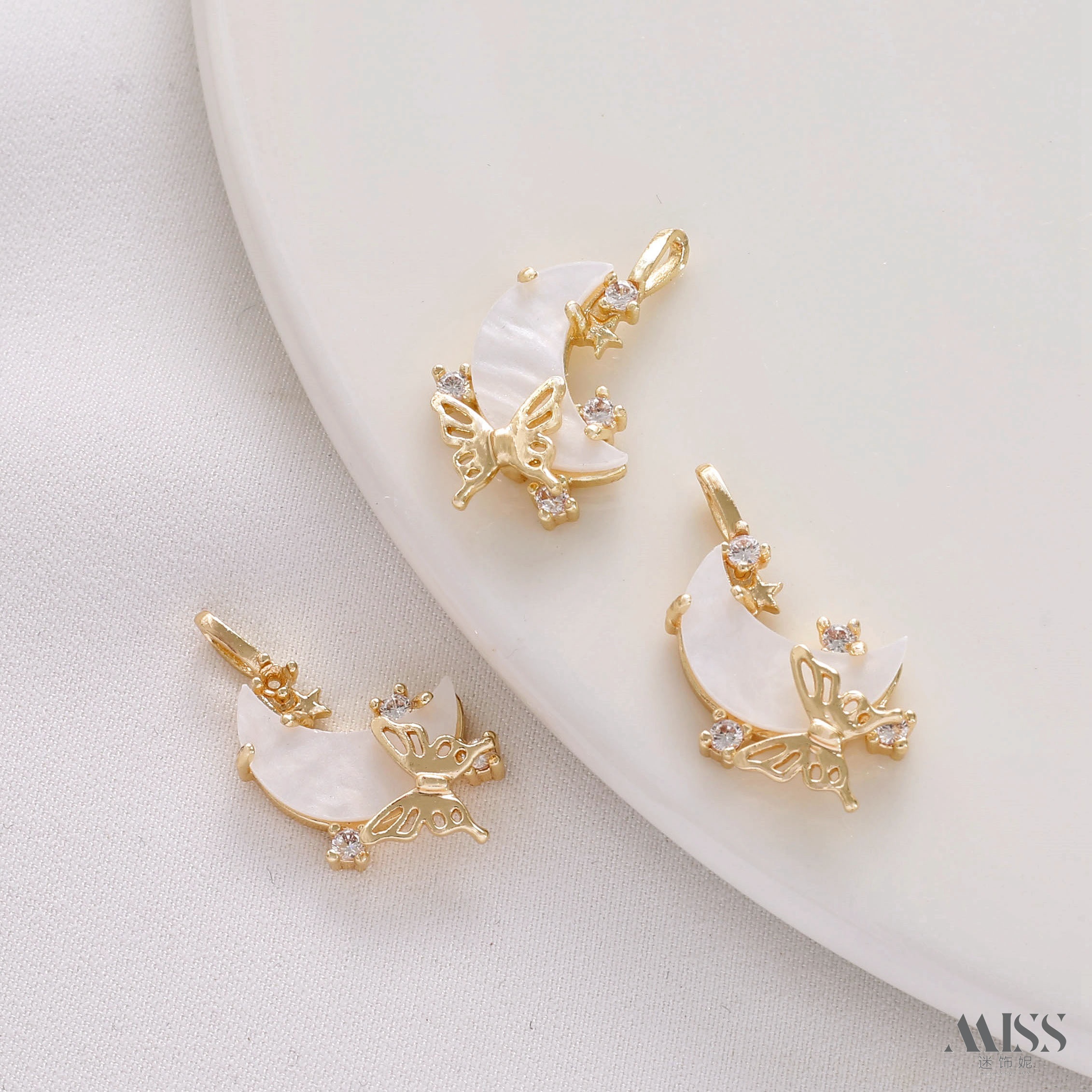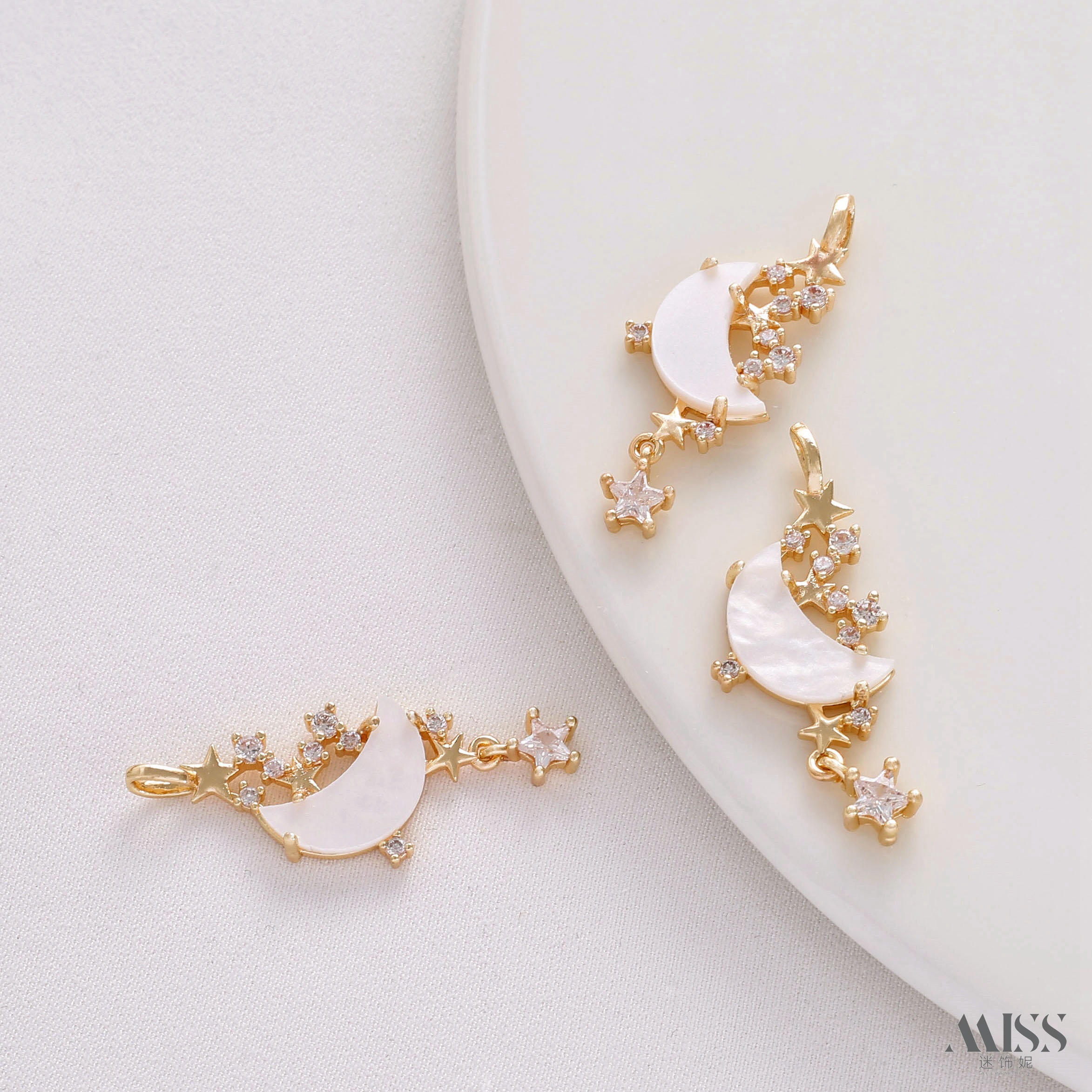 14K包金保色镶锆石贝壳月亮星星水母吊坠diy手链项链耳吊饰品配件