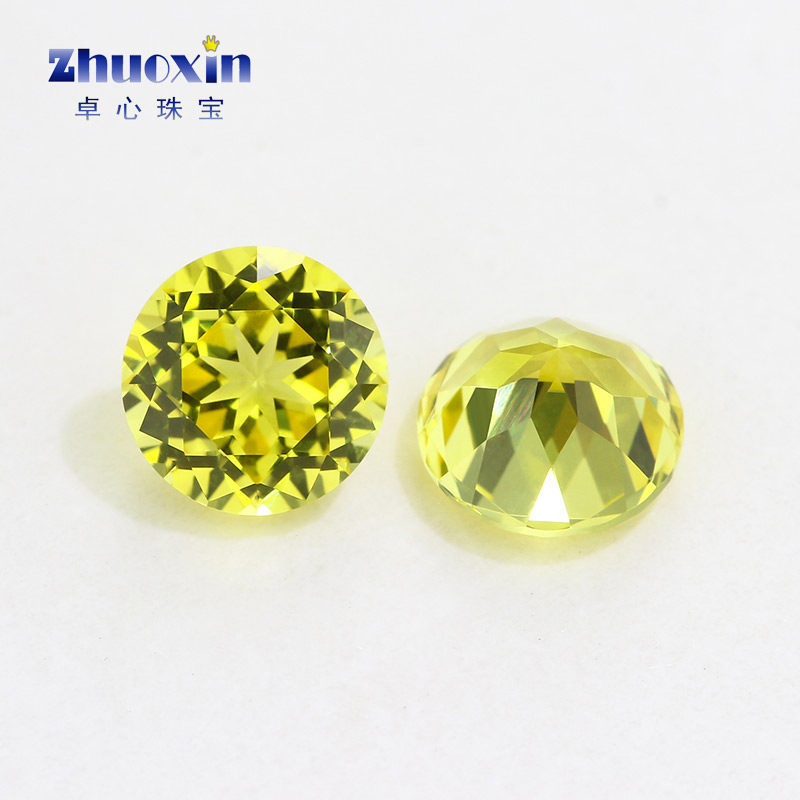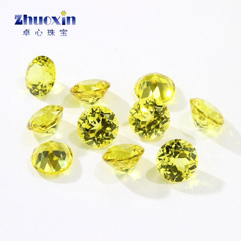 天然底切割黄色刚玉圆形20#裸石 尖底黄刚合成宝石高硬度镶嵌蜡镶