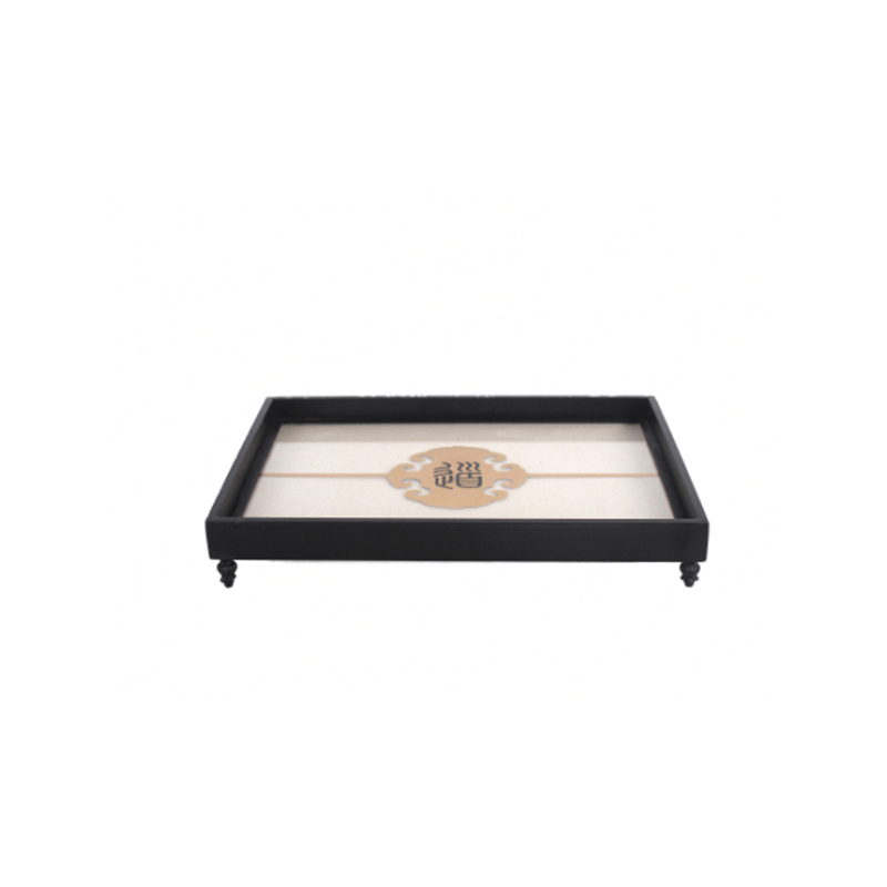 新中式样板房软装饰品铁艺玻璃金属托盘茶几茶盘设计师桌面摆件