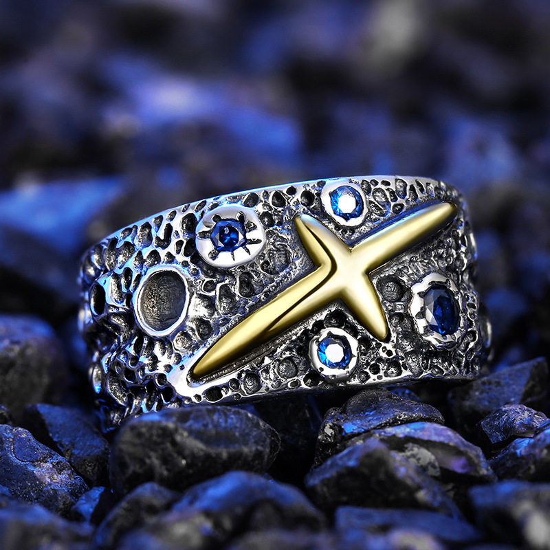 新款星空蓝色戒指霸气潮人男士个复古开口韩版潮