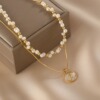 时尚双层叠戴珍珠项链女小众设计高级感颈链2025年新款爆款锁骨链