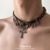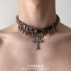 豹纹铆钉流苏choker甜酷辣妹项圈小众设计缠绕项链十字架吊坠颈链