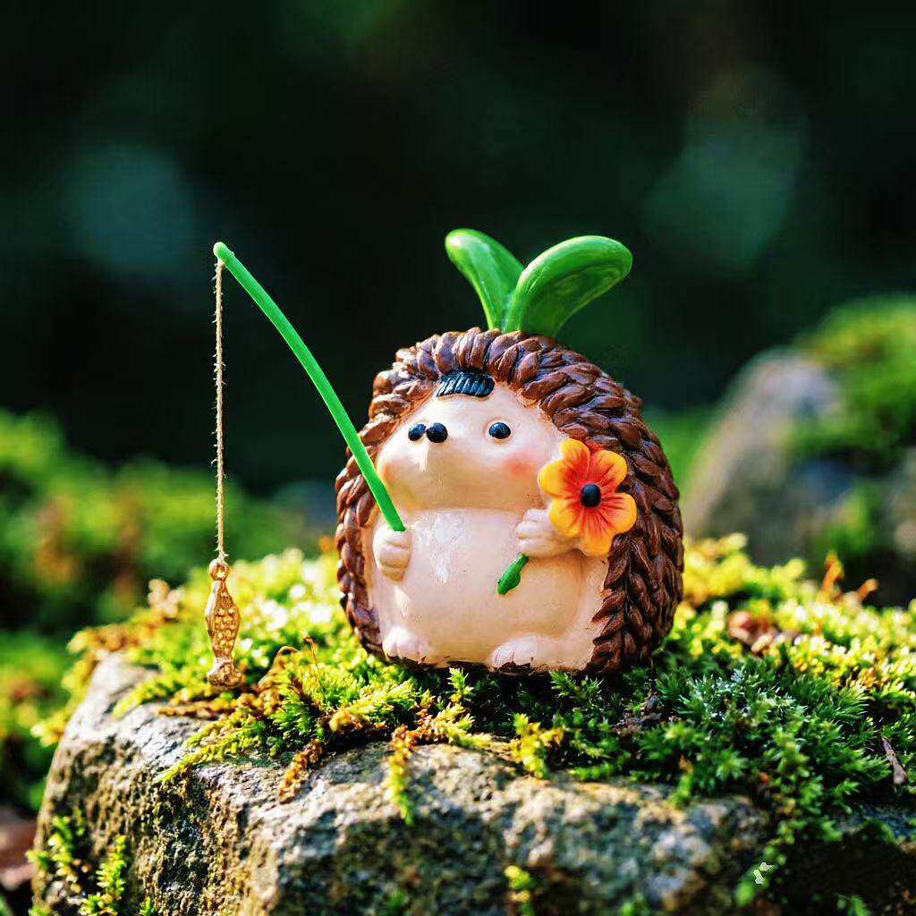 创意可爱刺猬钓鱼装饰鱼缸造景流水摆件树脂动物工艺品办公桌摆设