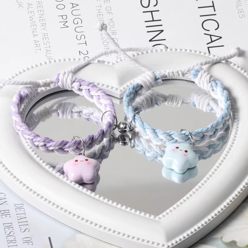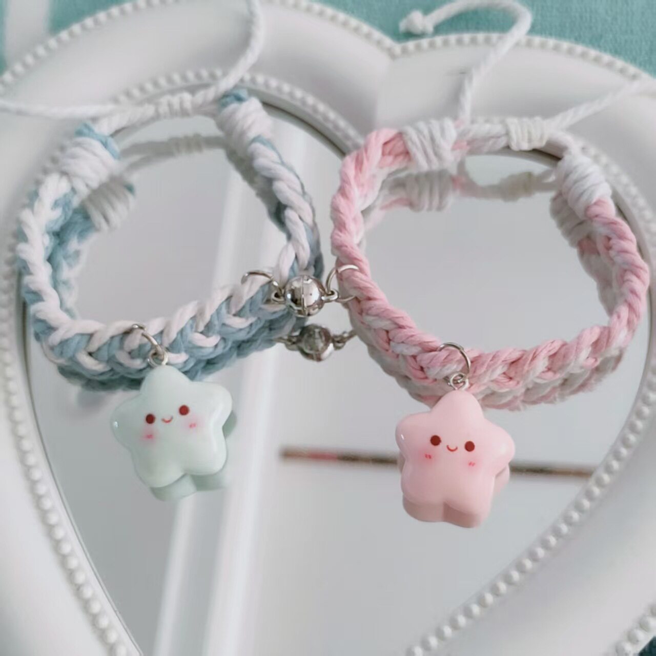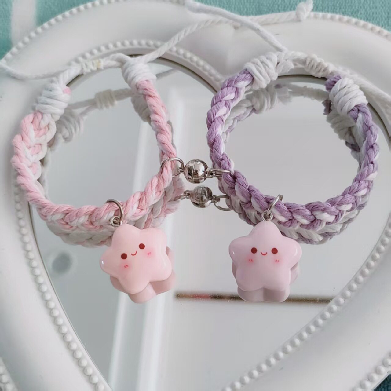 可爱手工编织手链情侣闺蜜一对星星手环礼物可调节高颜值磁吸手绳