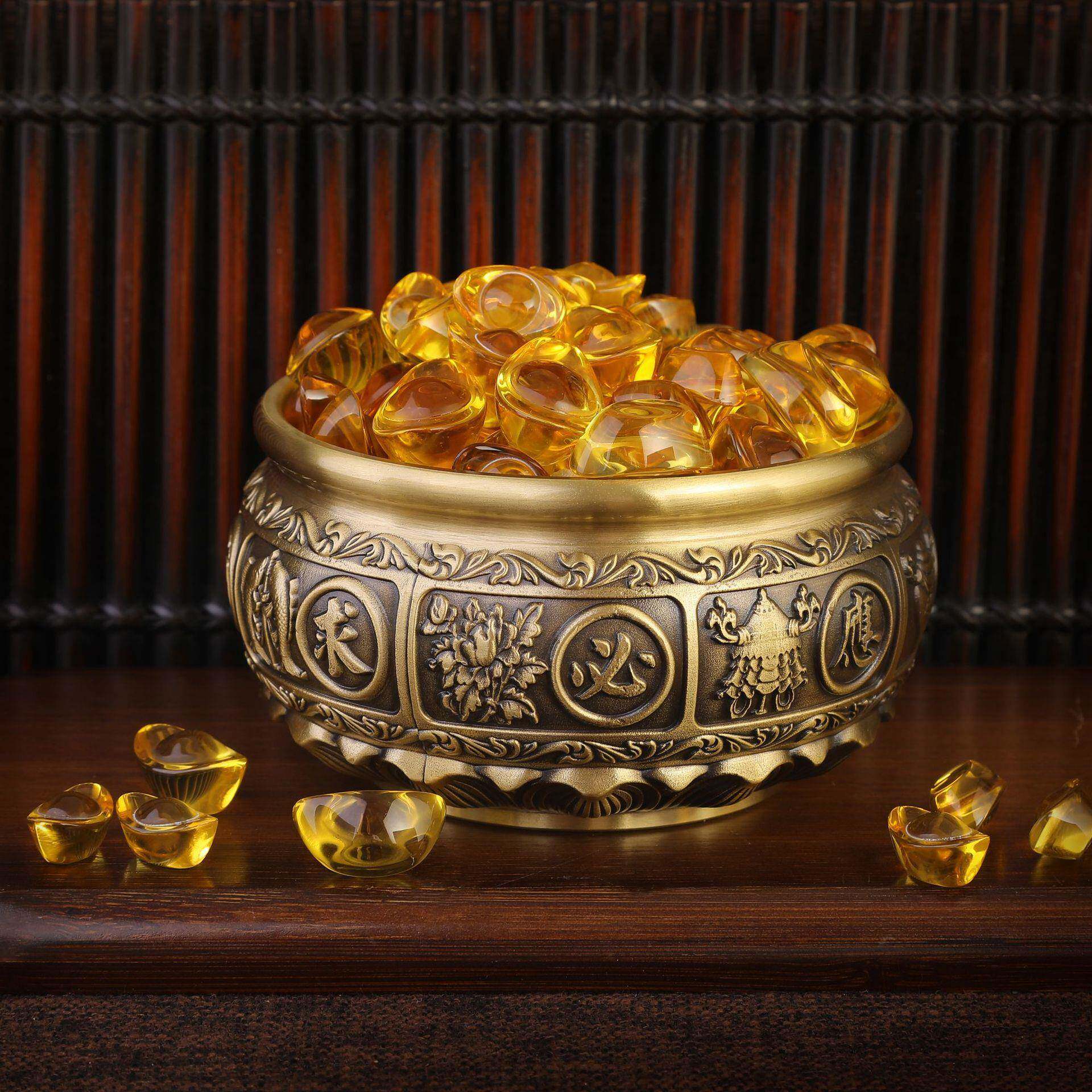 纯开黄铜压铸求必应JBP-2-6铜有盆招聚米聚宝盆财缸铜米器摆件业