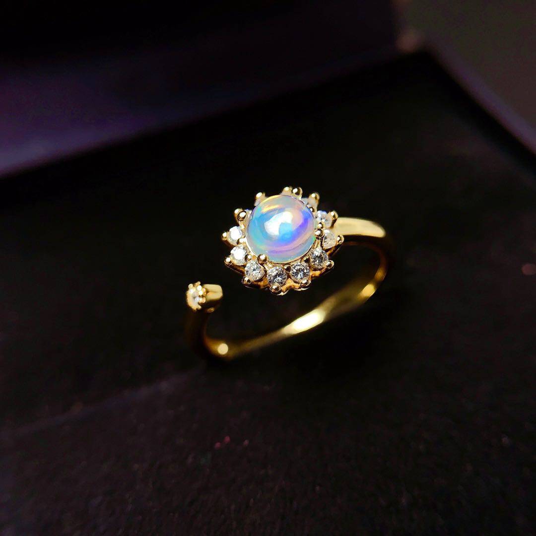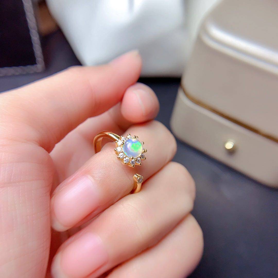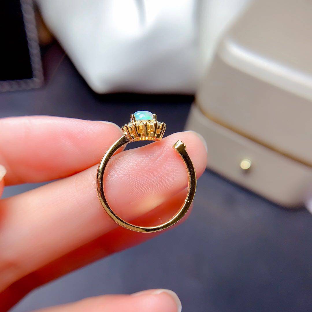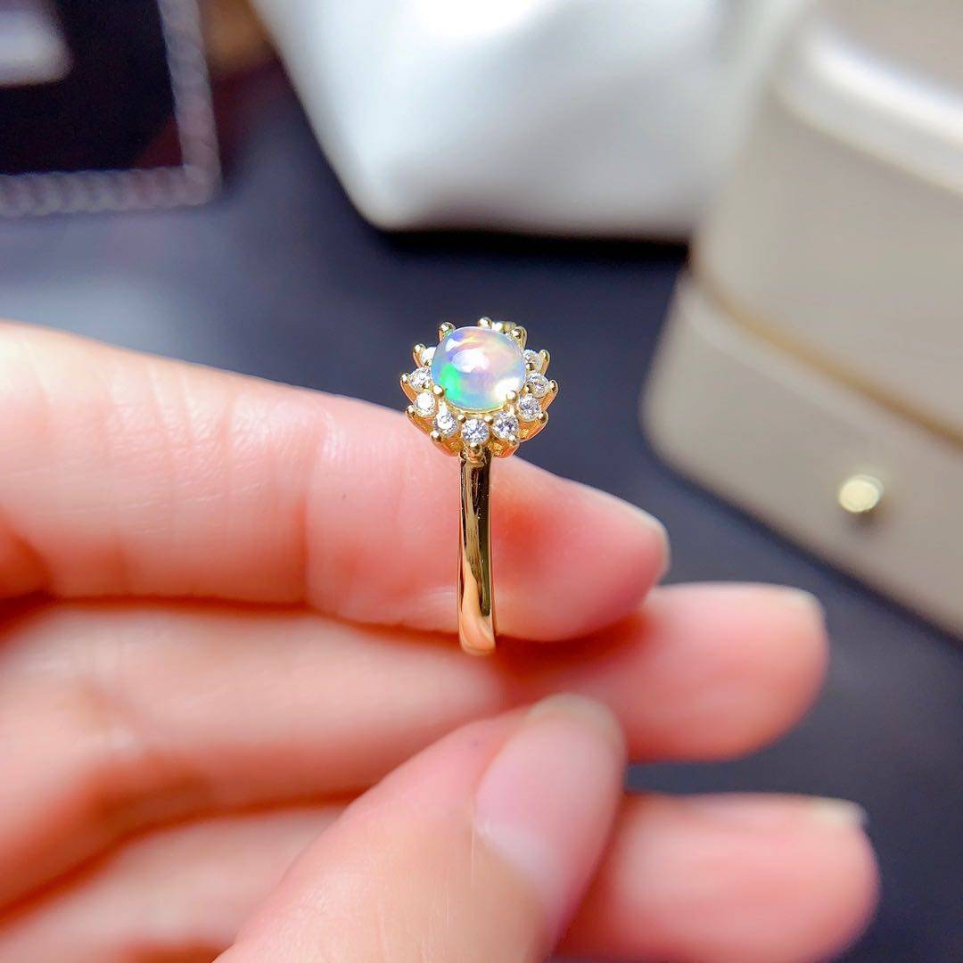 特惠天然欧泊戒指绚丽火彩 主石5*5Mm 精工925银镀黄金