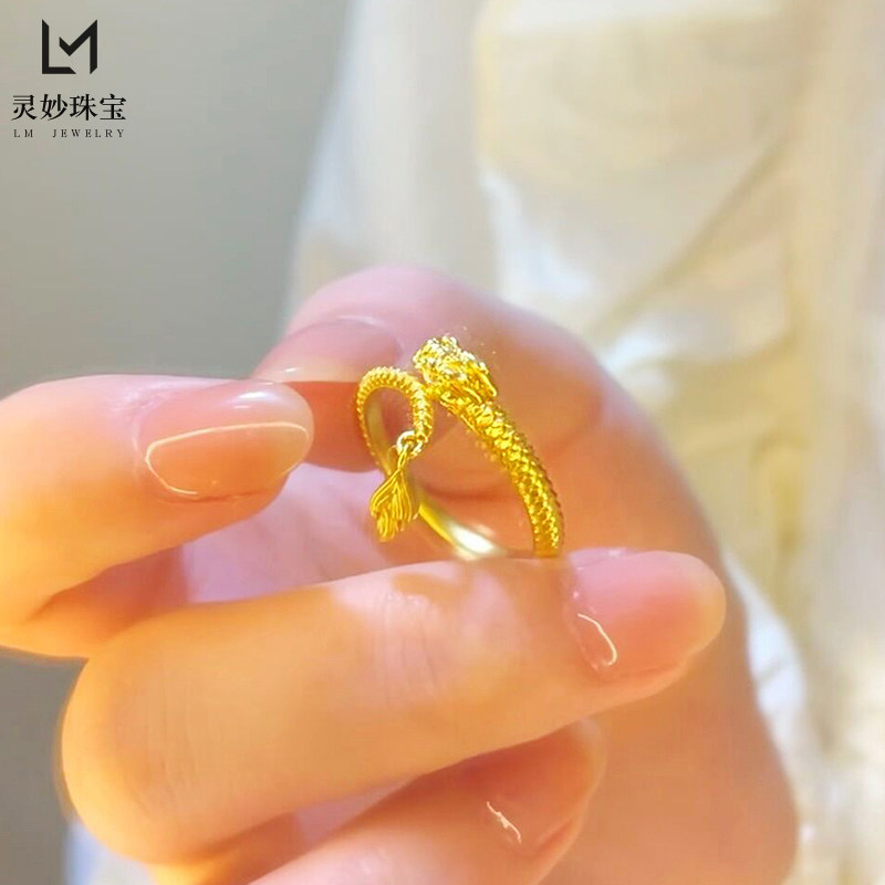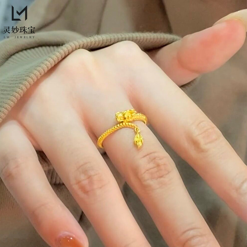 金店同款沙金999神龙摆尾戒指女本命年情侣对戒生肖龙活口可调节