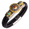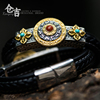 九宫转运!必买银手镯子!仓吉手工复古饰品真皮手环男女情侣个性