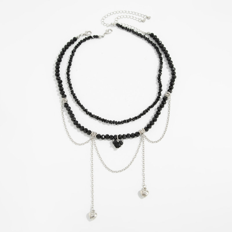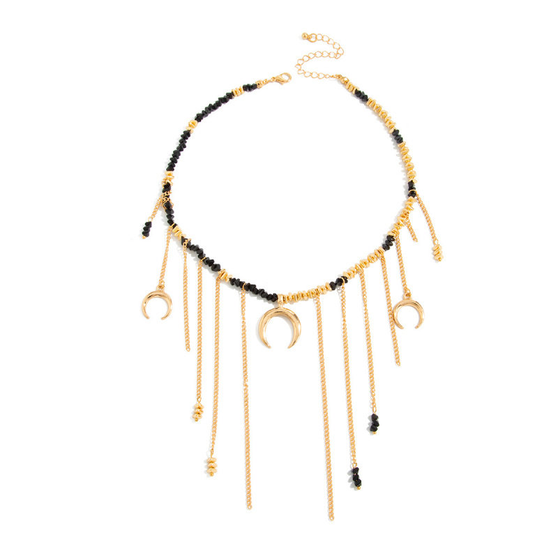 欧美跨境甜酷辣妹风月牙爱心吊坠流苏项链 时尚仿水晶串珠锁骨链