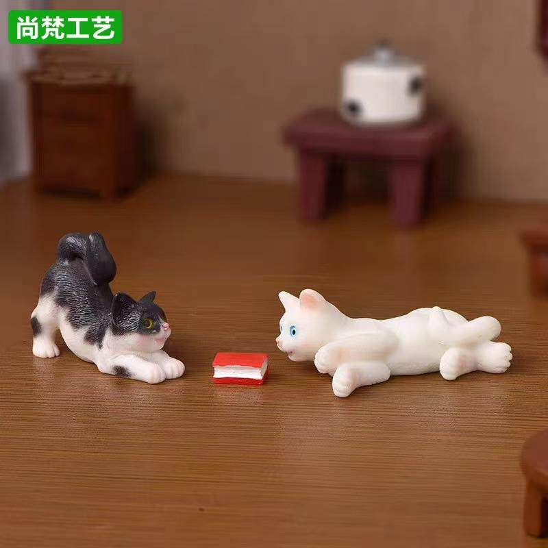 创意微景观卡通可爱仿真小猫咪动物公仔手办装饰品配件桌面小摆件