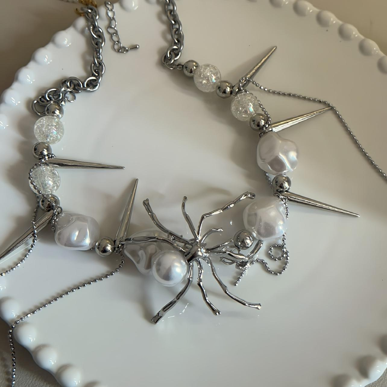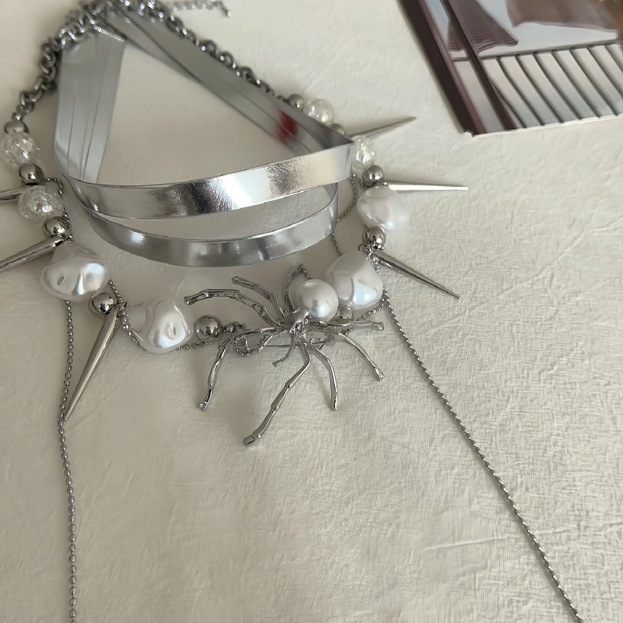 异形蜘蛛朋克多层项链y2k亚文化女夸张铆钉辣妹流苏项圈锁骨链