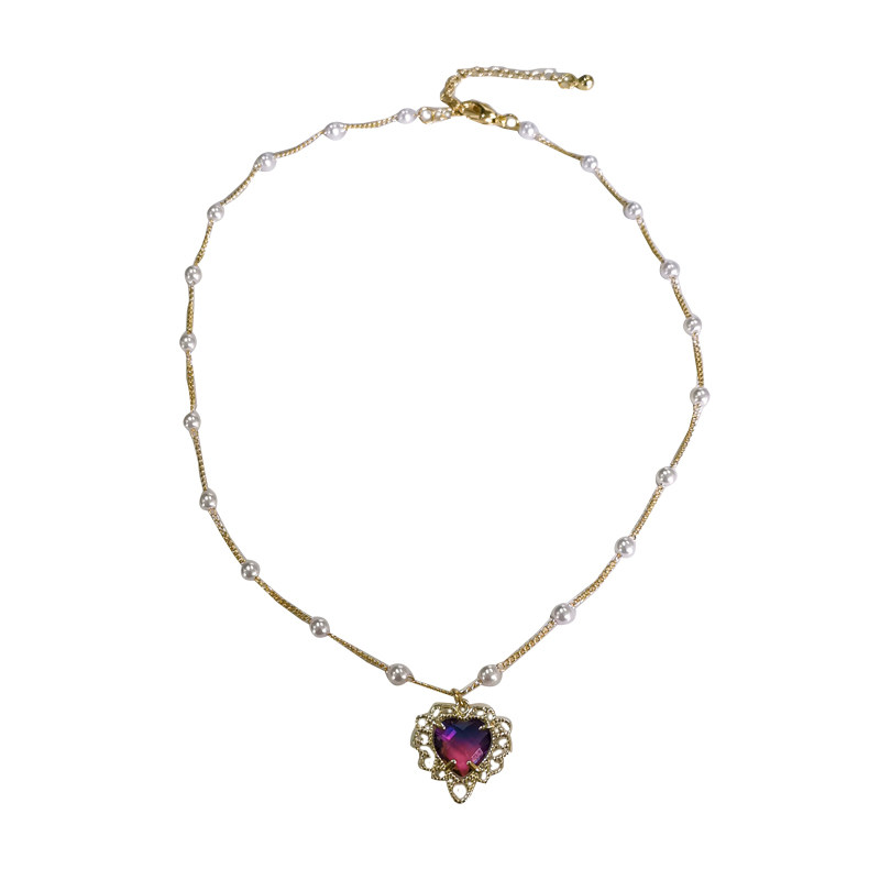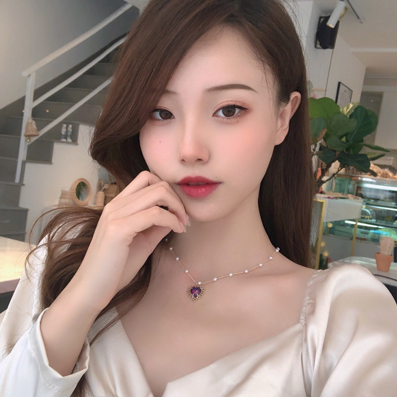 复古宫廷风爱心项链气质甜美紫色吊坠颈链ins风时尚珍珠锁骨链917