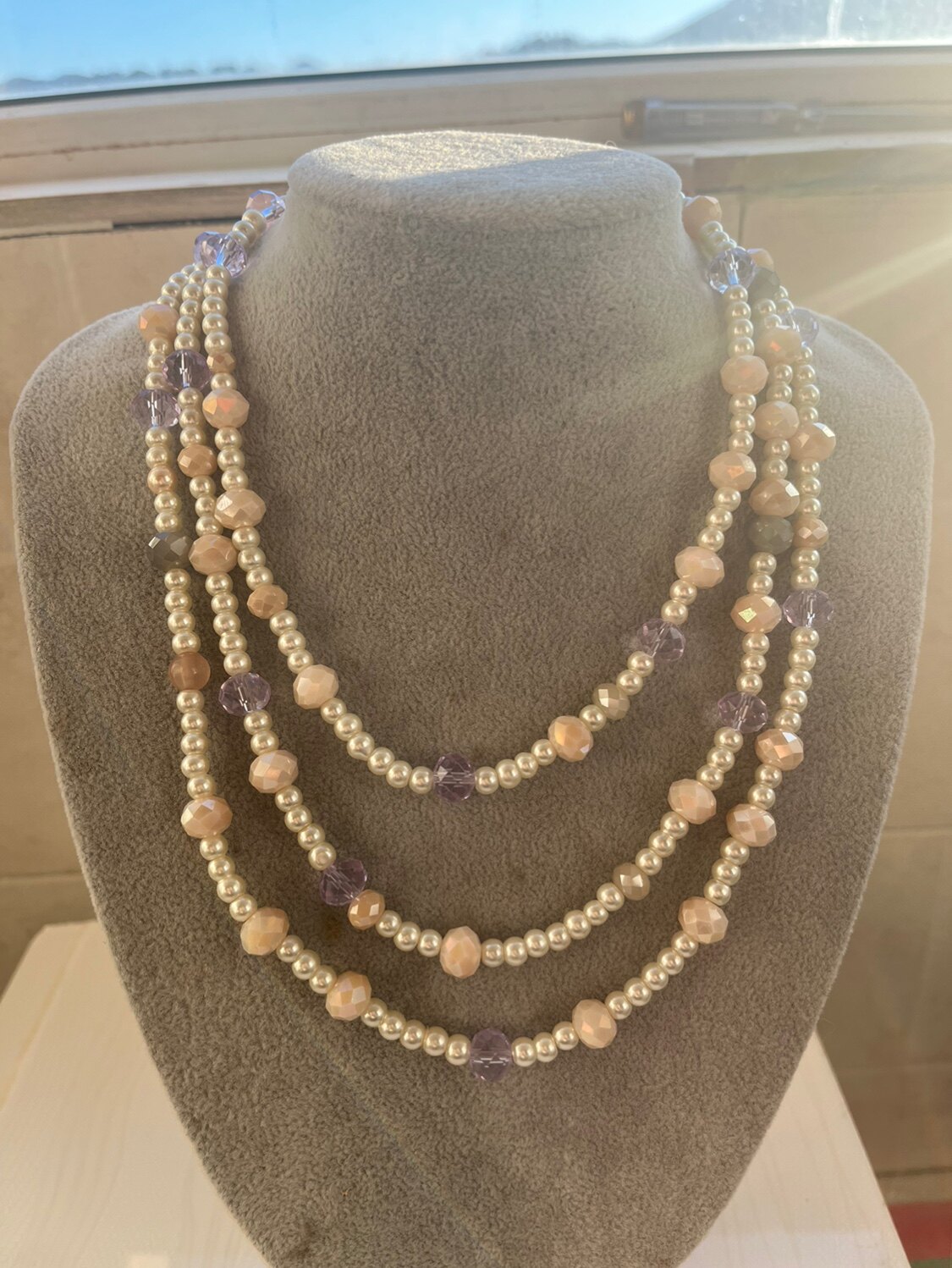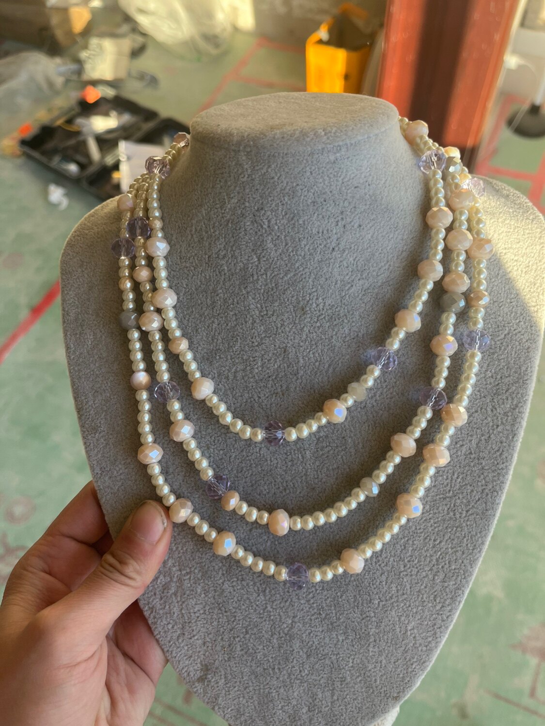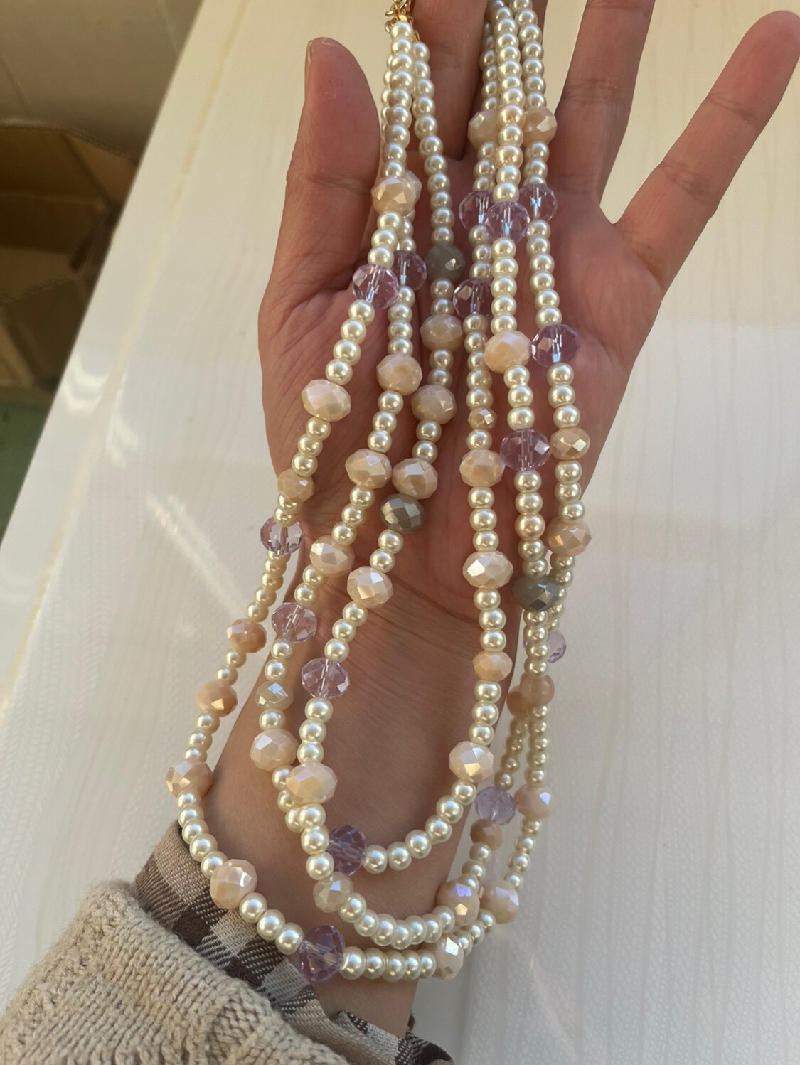 白色琉璃珍珠多层项链粉色紫色捷克水晶珠 很温柔的颜色