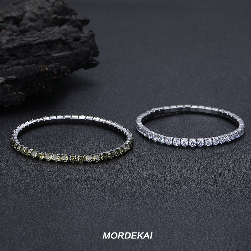 MORDEKAI镶钻绿色锆石手链潮嘻哈单排满钻情侣款手饰弹力链D-1718