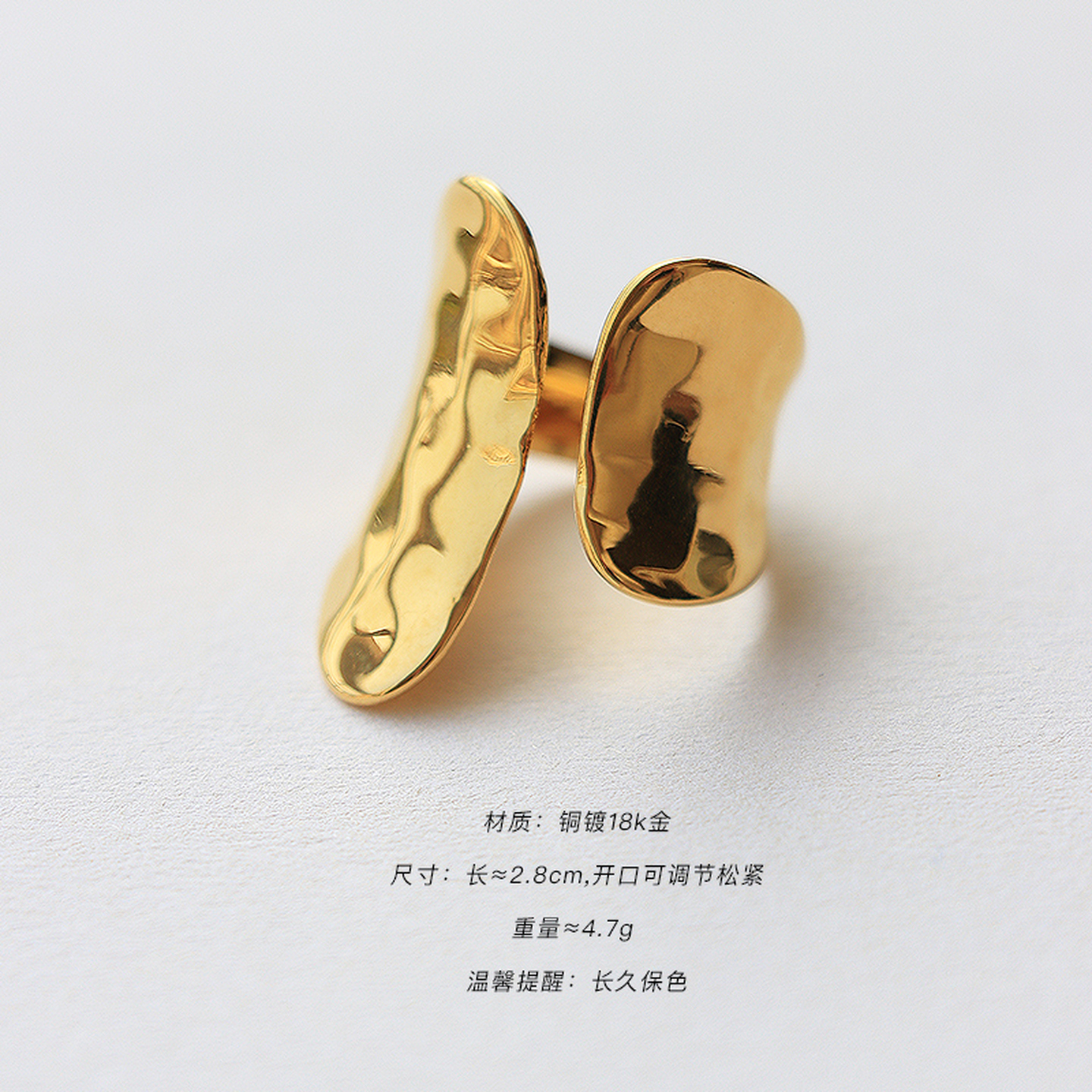 轻奢老钱风高级感金色戒指不掉色亮面女开口小众设计时尚指环食指