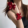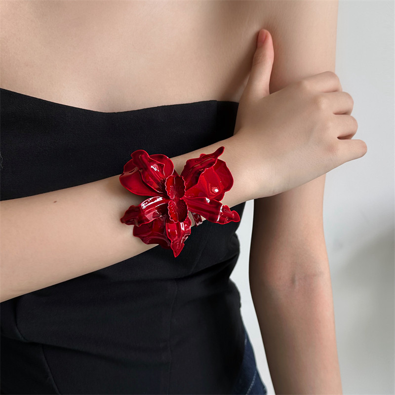 欧美复古风酒红色花朵开口戒指臂环女小众个性时尚夸张设计感配饰