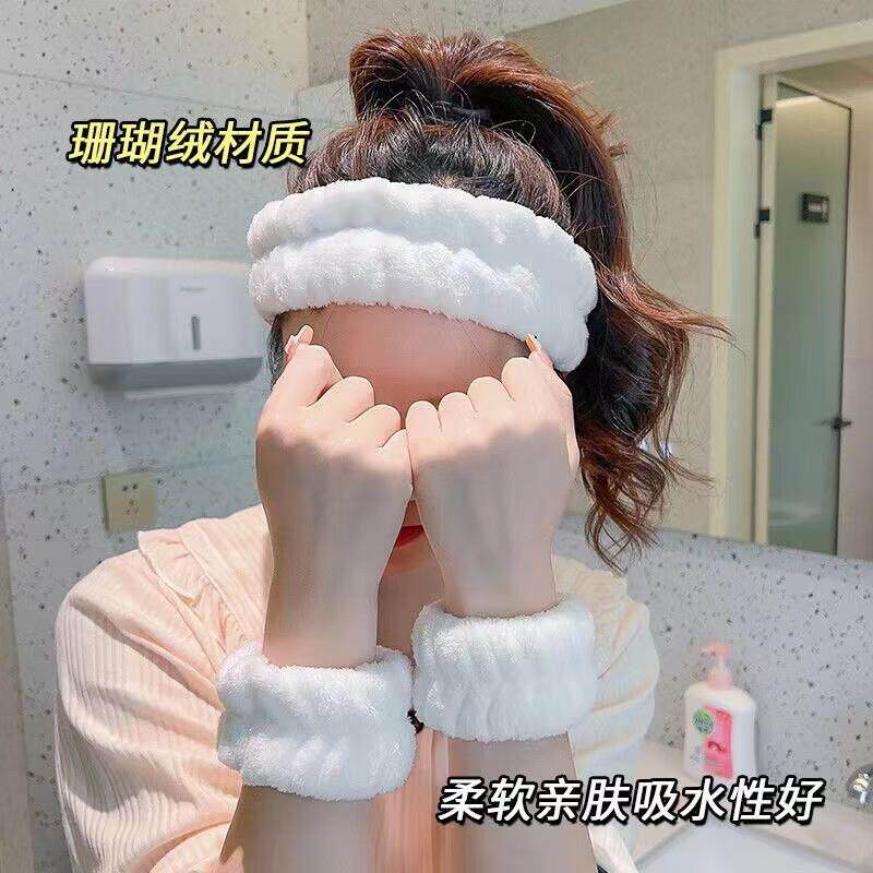 洗脸防湿三件套 珊瑚绒吸水束发带手腕带女士洗漱护肤防打湿工具