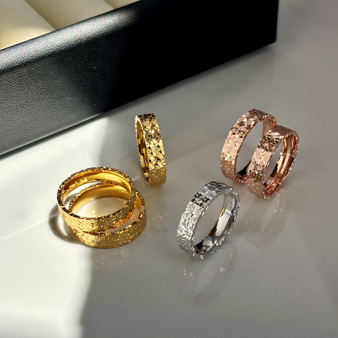 玫瑰金色细窄版碎冰冰戒指女生小众设计师简约高级感尾戒对戒戒子