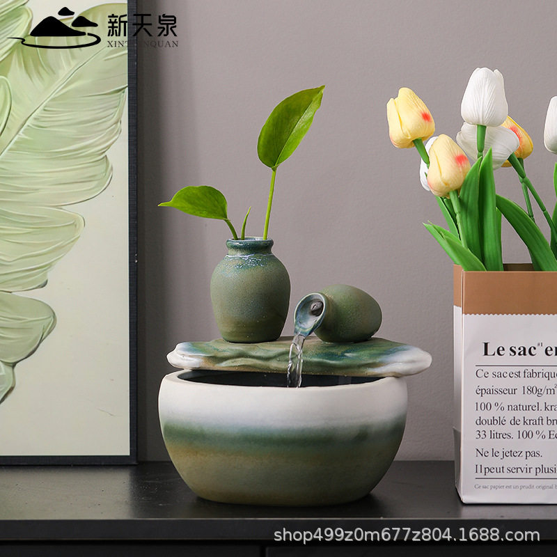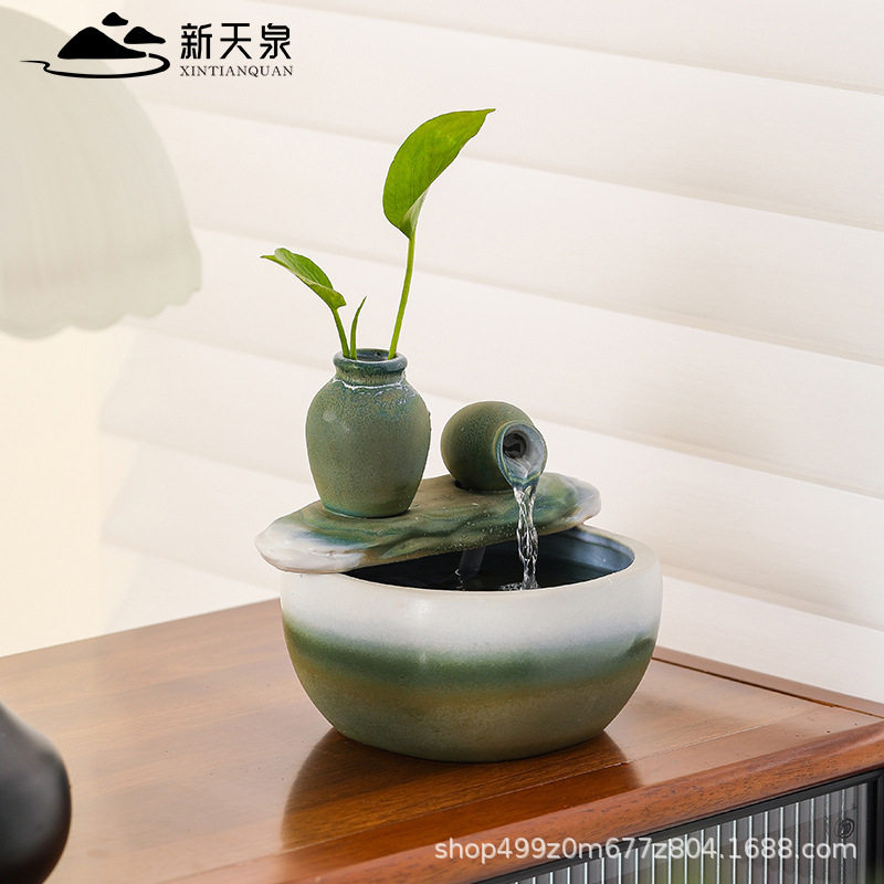 新天泉创意陶瓷流水摆件自动循环水办公室桌面加湿器招财客厅装饰