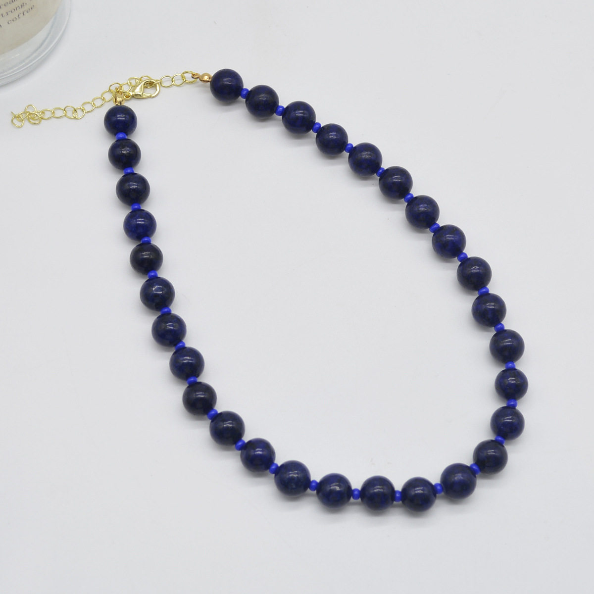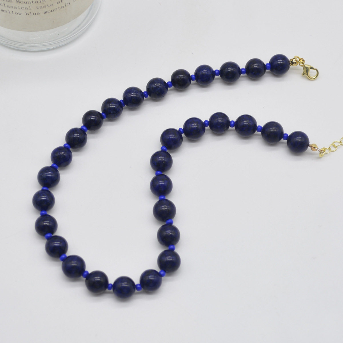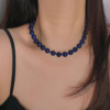 博主fever同款深蓝色圆珠项链复古串珠锁骨链夸张高级感个性颈链