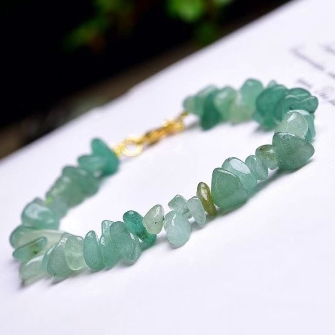 天然绿色东陵玉手链女碎石单圈延长链款手串可调节送朋友礼物百搭