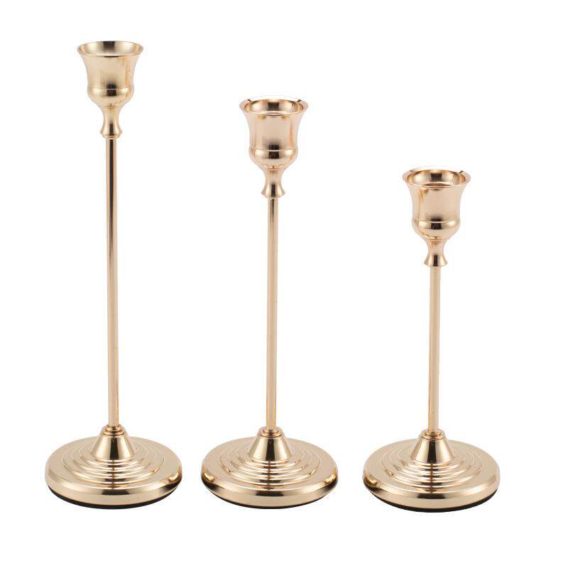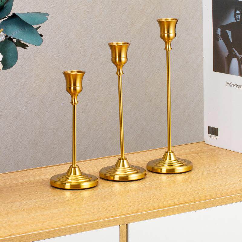 欧式小喇叭蜡烛台烛光晚餐装饰金色蜡烛台铁艺电镀金属工艺品摆件