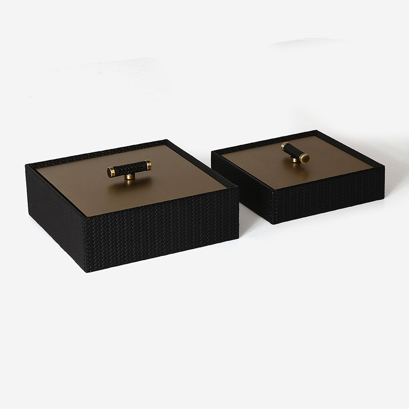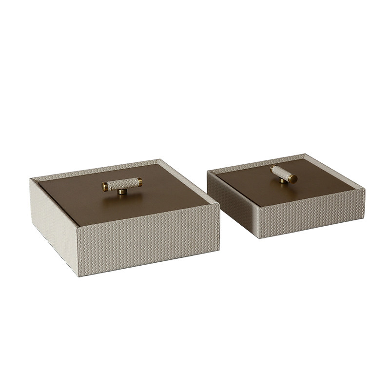 柏凯奇现代轻奢梳妆台装饰盒摆件样板间售楼处白色皮革金属首饰盒