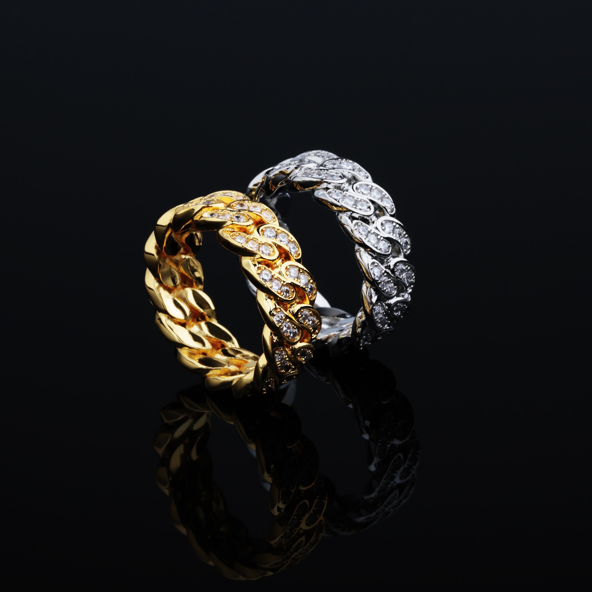 满钻古巴戒指男简约女镶钻欧美嘻哈潮流男士高级感时尚情侣尾戒