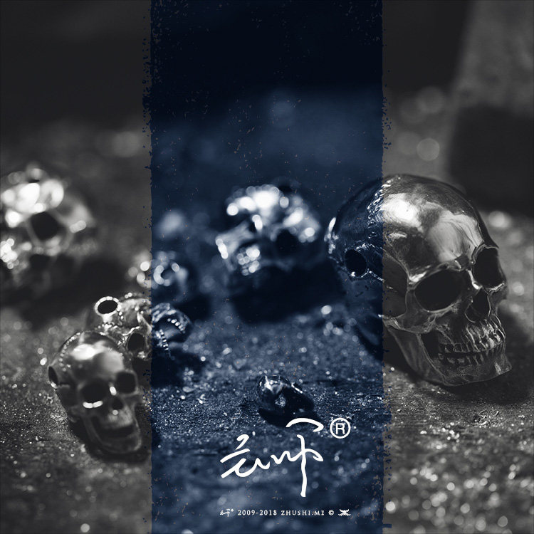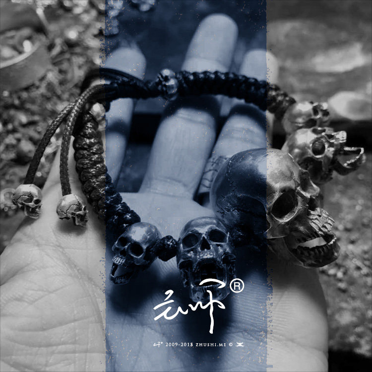 主师原创手工s925纯银骷髅三通佛头散珠手串个性diy刀坠百搭配件