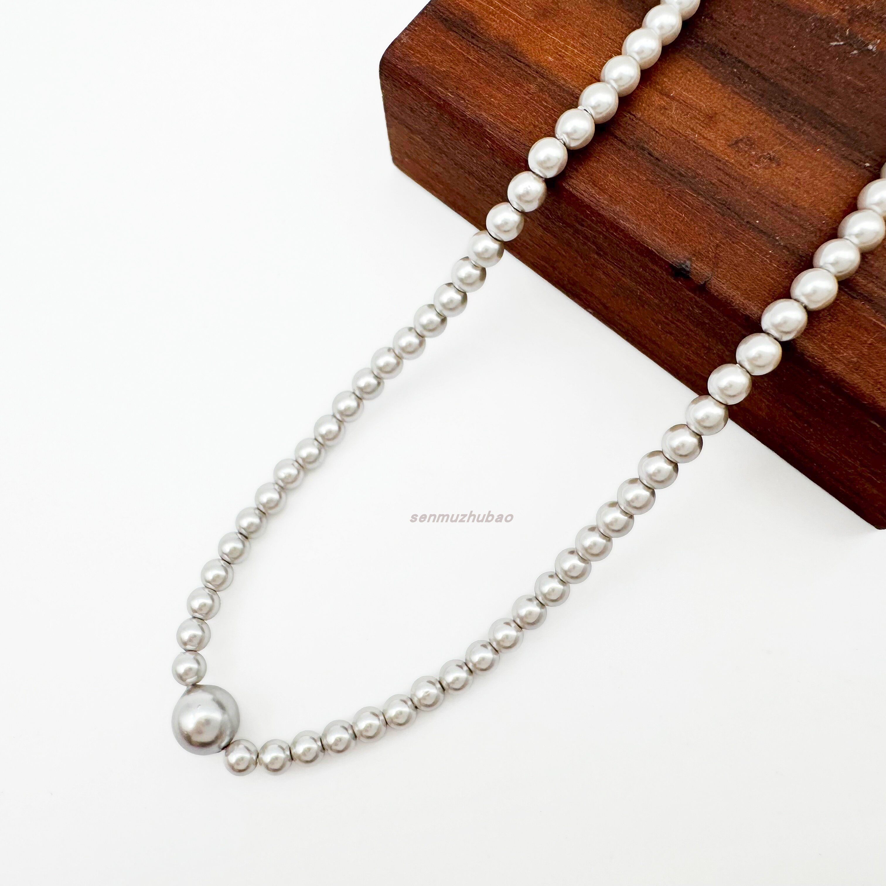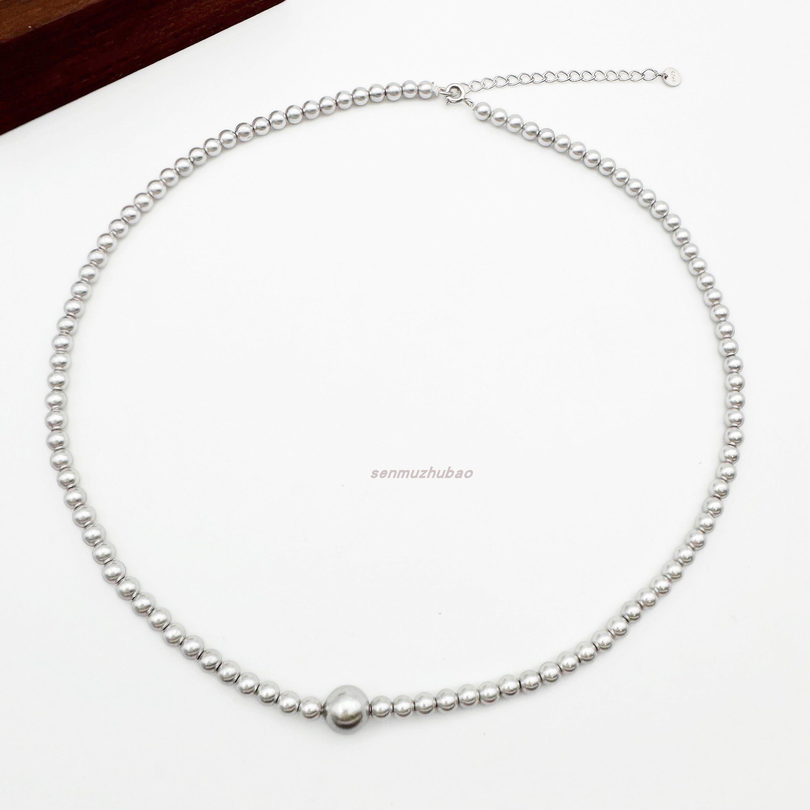 925纯银法式复古风浪漫优雅轻奢高级感极简风灰色珍珠项链脖颈链
