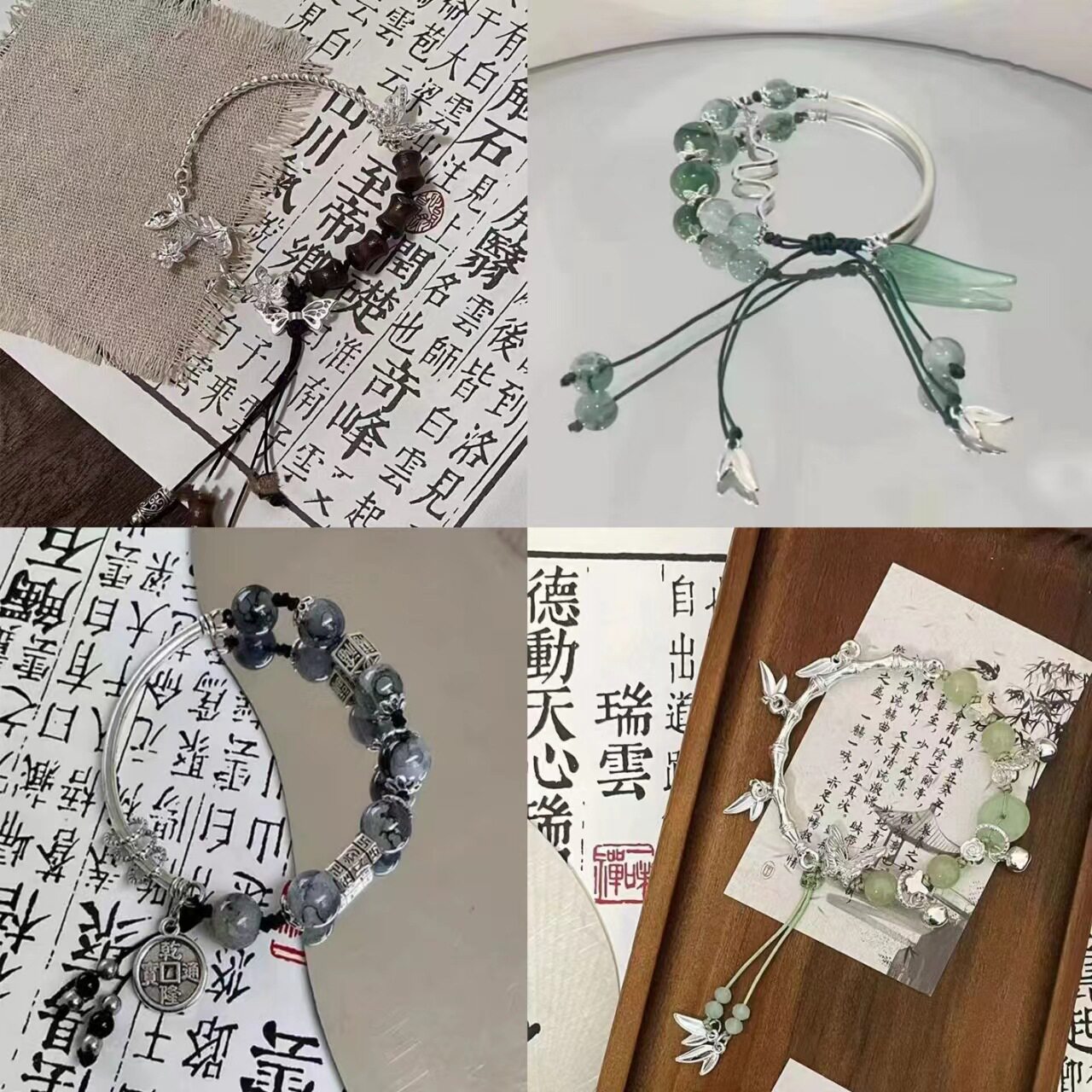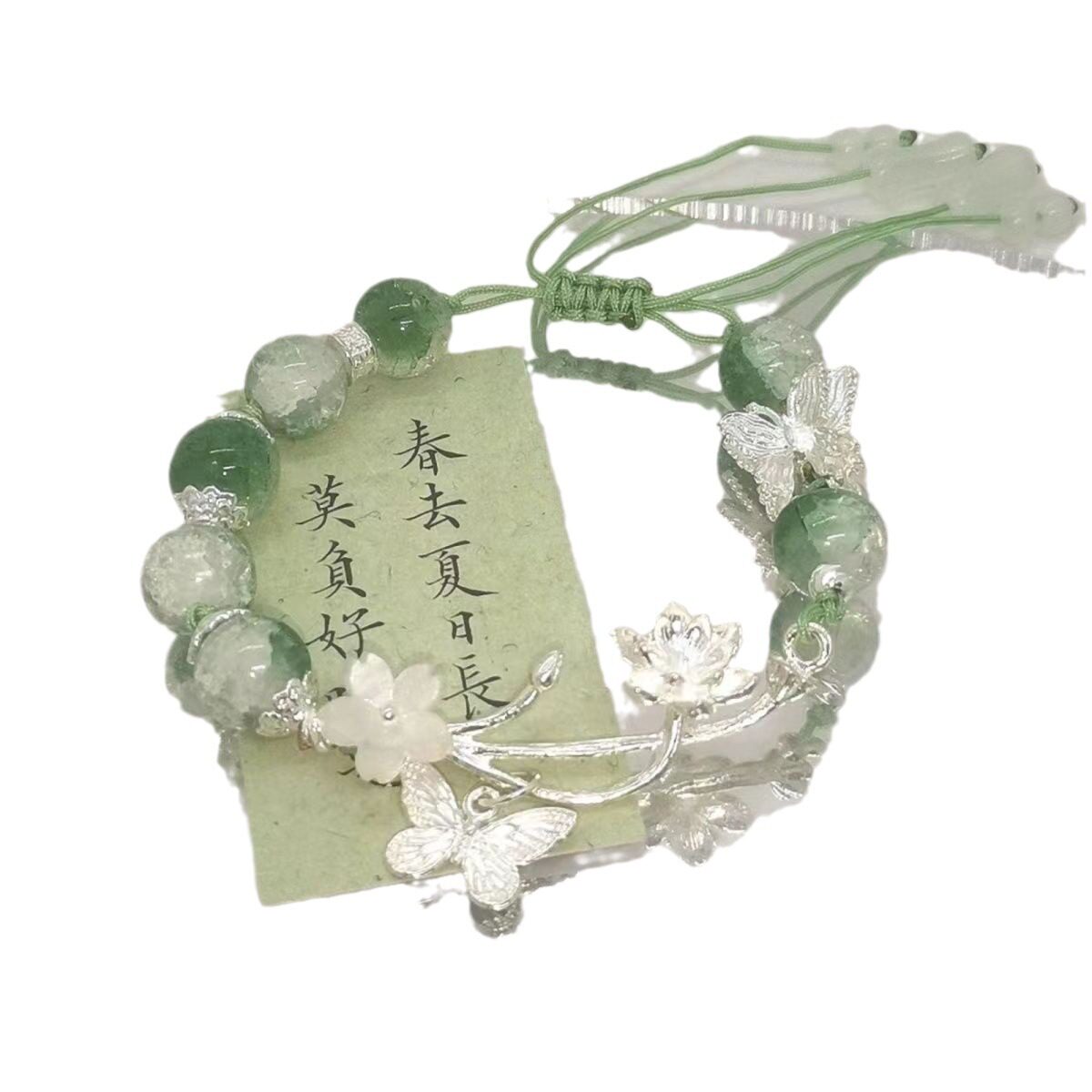 青青子衿中式古风绿色清冷手链复古国风手饰手串小众设计蝴蝶