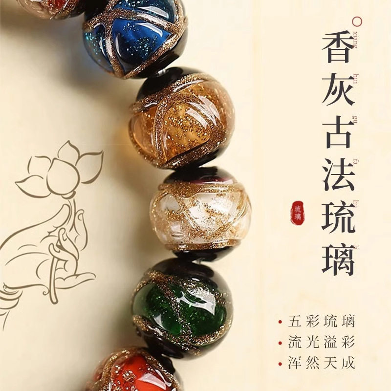 香灰琉璃手串北京同款五彩古法多宝吞金兽情侣款手链佛珠手链饰品